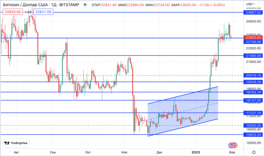 Bitcoin: институционалы активизировали покупки, но стоит проявить осторожностьИнстаФорекс - Instaforex, 2 года назад Bitcoin не только не преодолел отметку в 24 000 долларов, но и полностью растерял все позиции воскресенья, остановившись на уровне поддержки 22 700. И хотя пока что эта горизонталь держится, свечной паттерн медвежьего поглощения создает тревожные предпосылки. Стоит отметить, что, ввиду насыщенной недели, поспешные выводы делать не стоит, ситуация по техническим ориентирам прояснится, скорее всего, к выходным. Институциональный интерес к Bitcoin возобновляетсяПока рынок ждет выхода значимых новостей, отчет, поступивший от CoinShares, показал, что продукты для инвестиций в цифровые активы, которые часто предпочитают институциональные инвесторы, на прошлой неделе получили приток более 117 миллионов долларов. Это рекордный еженедельный прирост с июля 2022 года. Это может быть признаком того, что инвесторы начинают оттаивать после критозимы. Тем не менее ФРС все еще может испортить вечеринку, если на этой неделе займет более ястребиную позицию. Активность на рынке опционов указывает на то, что трейдеры спешат сделать ставки сразу после заседания ФРС, что является признаком того значения, которое рынок придает этому событию, сообщил поставщик криптоликвидности B2C2. По данным CoinShares, объемы торгов криптовалютами также растут, при этом средние недельные объемы выросли на 11%, что указывает на то, что трейдеры возвращаются после нескольких месяцев затишья. Ранее поступали данные о том, что индекс страха и жадности Bitcoin, где 0 указывает на крайний страх и 100 на крайнюю жадность, колеблется на уровне 61 - самом высоком с середины ноября 2021. Подтверждение окончания медвежьего рынкаТем временем, по мнению аналитиков биржи Bitfinex, есть и другие признаки того, что конец медвежьего рынка может быть близок. Они отмечают, что краткосрочные инвесторы продавали свои биткоины с прибылью, в то время как долгосрочные «ходлеры» по-прежнему придерживали свои монеты и не способствовали давлению со стороны продавцов. «Реализованная прибыль и убыток для всего рынка были зарегистрированы как положительные в январе 2023 года впервые с апреля 2022 года, продолжение этой тенденции будет сигнализировать о последних стадиях медвежьего рынка», - подчеркнули они. Кроме того, Bitcoin-доминирование в этом месяце колебалась около 41%, уровня, невиданного с июля прошлого года. Аналитики Citi по этому поводу подчеркнули, что аналогичный скачок доминирования был зафиксирован в апреле 2019 года, когда начало ралли подтвердило дно рынка криптовалют. Также на этой неделе рекомендуется следить за рынком акций, особенно технологических, которые чувствительны к процентным ставкам. Корреляция Bitcoin с Nasdaq сейчас составляет 0,94, что является самым высоким показателем с мая 2022 года, где значение 1 указывает на то, что они движутся синхронно. Волна ликвидаций, несмотря на консолидациюПоскольку рынок сейчас в ожидании всплеска волатильности, количество ликвидаций увеличилось, несмотря на то, что главная криптовалюта сохраняет довольно узкий торговый диапазон. Рост до 22 500 долларов спровоцировала длинную ликвидацию на 46 миллионов долларов 30 января, что, согласно данным Coinglass, было самым высоким ежедневным итогом за 2023 год. Тем временем дополнительные данные из сетевого аналитического ресурса Material Indica