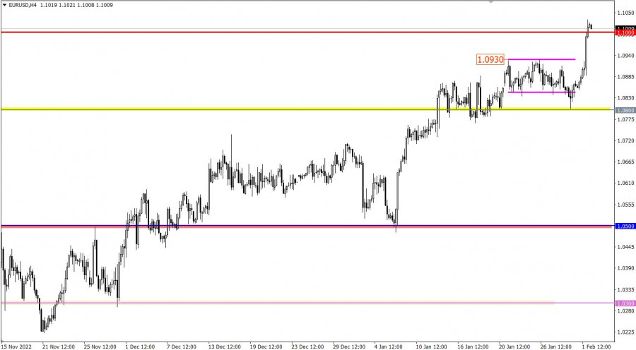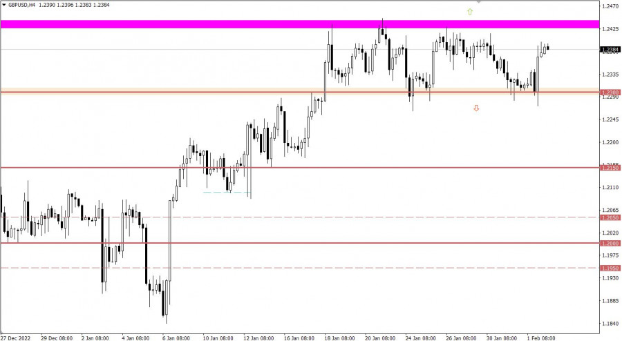 NASDAQ100 +3,22% S&P500 +1,5% EURUSD +1,17% GBPUSD +0,60% GOLD +1,14% BTCUSD +2,6% Разбор торговых графиков от 1 февраляВалютная пара EURUSD не просто сумела проявить восходящий интерес, по ней возникли кардинальные перемены. В начале был обновлен локальный максимум восходящего тренда, а после пробит психологический уровень 1.1000. Фактически был получен полноценный инерционный ход на фоне рыночных спекуляций. Валютная пара GBPUSD в период минувшего дня сумела проявить восходящую активность примерно на 80 пунктов. Однако это движение ни к чему кардинальному не привело. Котировка по-прежнему движется в рамках бокового канала 1.2300/1.2440. Экономический календарь на 2 февраляСегодня не менее интересный день, т.к. ожидаются сразу два заседания, Банка Англии и ЕЦБ. В обоих случаях ставка рефинансирования, исходя из прогнозов, должна поднята на 50 базисных пунктов. Это несколько больше, нежели в США, тем самым локально евро и фунт стерлингов могут получить поддержку на рынке. Стоит отметить, что особое внимание трейдеров будет уделено последующей пресс-конференции Кристин Лагард. В ходе которой глава ЕЦБ может расставить все по местам касательно перспектив денежно-кредитной политики. Ожидается, что как раз в период пресс-конференции на рынке возникнет наиболее сильная волатильность. Временной таргетинг Итоги заседания Банка Англии – 15:00 по МСК Итоги заседания ЕЦБ – 16:15 по МСК Пресс-конференция ЕЦБ – 16:45 по МСК Торговый план – ЕВРО/ДОЛЛАР 2 февраляСтоль сильные ценовые изменения за короткий промежуток времени привели к техническому сигналу о перекупленности евро в краткосрочных временных периодах. Это допускает замедление восходящего цикла с формированием отката. Стоит отметить, что последующие спекуляции возникнут на рынке в период итогов заседания ЕЦБ и последующей пресс-конференции с ее главой. С точки зрения технического анализа стабильное удержание цены выше уровня 1.1000 допускает последующий рост курса евро. Торговый план – ФУНТ/ДОЛЛАР 2 февраляДо тех пор, пока не возник пробой той или иной границы флета допускается сценарий отскока цены, что в теории технического анализа может привести к сокращению объема длинных позиций по фунту стерлингов в районе 1.2400/1.2440. Основной тактикой по праву считается метод пробоя, т.к. лишь он приведет к кардинальным переменам относительно действующего застоя. Исходя из тактики пробоя, конкретизируем вышесказанное: Нисходящий ход будет актуален в случае удержания цены ниже уровня 1.2300 в четырехчасовом периоде. Этот шаг может привести к формированию полноразмерной коррекции. Восходящий ход по валютной паре принимаются во внимание в случае стабильного удержания цены выше значения 1.2450 в четырехчасовом периоде. Этот шаг укажет на пролонгацию восходящего тренда. Что отражено на торговых графиках?