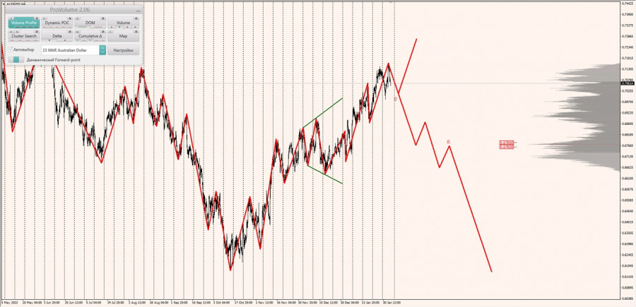 Долгосрочная тенденция: в лонг. Максимальное скопление объемов текущего контракта расположено в диапазоне по котировкам 0.67600-0.67800. В настоящий момент по паре совершаются инвестиционные операции выше, указывая на силу покупателей.