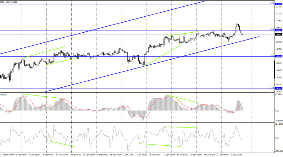 EUR/USD. 3 февраля. Повышение ставки ЕЦБ не помогло евровалютеИнстаФорекс - Instaforex, 2 года назад Добрый день, уважаемые трейдеры! Пара EUR/USD в четверг пара выполнила разворот в пользу американской валюты и начала мощный процесс падения в направлении коррекционного уровня 200,0%, 1,0869. Отбой котировок от этого уровня сработает в пользу валюты ЕС и возобновления роста в направлении уровня 1,1000. Закрытие курса пары под 1,0869 повысит вероятность дальнейшего падения. Если рассматривать результаты заседаний ЕЦБ и ФРС поверхностно, то получается следующая картина. ФРС повысил процентную ставку на 0,25%, чего и ждали трейдеры, и доллар упал. ЕЦБ повысил ставку на 0,50%, чего и ждали трейдеры, и евро упал. О чем говорит такое поведение рынка? Только о том, что все решения ЕЦБ и ФРС были отработаны заранее. Многие эксперты в своих материалах говорили об этом. Суть подобного явления заключается в том, что представители регуляторов весь январь практически открыто заявляли о своих будущих решениях. В итоге накануне обоих заседаний у трейдеров даже не осталось «вилки» возможных сценариев. Вероятность того, что ЕЦБ повысит ставку не на 0,50%, а ФРС – не на 0,25%, была практически нулевой. Поэтому, как я уже сказал выше, все эти изменения в ДКП были отработаны еще в январе. Вчера же и позавчера трейдеры уже не могли торговать в соответствии с информационным фоном, поэтому последовали противоположные сделки. На мой взгляд, теперь может начать падение евро, но следует понимать, что движения пары в последние два дня – это исключение из правила. Падение пары вчера может смениться уже сегодня ростом, если информационный фон из Америки окажется слабым. Я считаю, что выводы следует делать уже в понедельник, когда все отчеты будут полностью отработаны. Доллар осуществляет попытки перехватить инициативу, но пока слишком рано делать выводы. На 4-часовом графике пара выполнила разворот в пользу валюты США и начала процесс падения. Восходящий трендовый коридор по-прежнему характеризует настроение трейдеров, как «бычье». Отбой котировок от его нижней линии сработает в пользу возобновления роста в направлении коррекционного уровня 61,8%, 1,1273. Закрытие пары под коридором повысит вероятность дальнейшего падения в направлении уровня Фибо 38,2%, 1,0610. Новых назревающих дивергенций не наблюдается ни у одного индикатора. Отчет Commitments of Traders (COT):