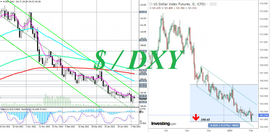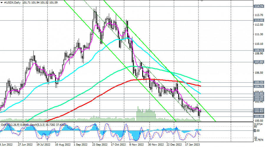 Индекс доллара: краткие итоги и ближайшие перспективыИнстаФорекс - Instaforex, 2 года назад Как мы отметили в нашей сегодняшней статье, сегодня доллар и его индекс DXY вновь перешли к снижению: на момент публикации данной статьи фьючерсы DXY торгуются вблизи отметки 101.51, на 83 пункта выше вчерашнего (и 10-месячного) минимума 100.68. Индекс доллара неуклонно движется в сторону психологически значимой отметки 100.00, и пока что преобладает его нисходящая динамика, что делает короткие позиции по DXY (CFD #USDX в торговом терминале МТ4) предпочтительными. После очередного пробоя уровня поддержки 101.00 и в случае дальнейшего снижения целями станут ключевые уровни поддержки 100.00, 98.75 (ЕМА200 на недельном графике). Первый самый быстрый сигнал уже поступил – цена пробила важный краткосрочный уровень поддержки 101.63 (ЕМА200 на 15-минутном графике). Пробой локального уровня поддержки 101.00 и вчерашнего минимума 100.68 станет подтверждающим сигналом для наращивания коротких позиций. В альтернативном сценарии DXY возобновит рост, вернувшись в зону бычьего рынка, выше уровней сопротивления 104.75 (ЕМА200 на дневном графике), 105.25 (ЕМА144 на дневном графике). Первым сигналом реализации этого сценария станет пробой уровней сопротивления 101.85 (ЕМА200 на 1-часовом графике), 102.00. Пробой уровня сопротивления 105.25 (ЕМА144 на дневном графике) подтвердит сценарий возобновления роста DXY. А сегодня участники рынка переключают свое внимание на предстоящую (в 13:30 GMT) публикацию ежемесячного отчета Минтруда США с данными за январь (о важных событиях недели см. в Важнейшие экономические события недели 30.01.2023 – 05.02.2023). Участники рынка внимательно следят за данным отчетом, а волатильность на рынке в период его публикации обычно резко повышается, особенно в котировках доллара. Рост показателей данного отчета (средней почасовой заработной платы и числа новых рабочих мест, созданных вне сельскохозяйственного сектора) и снижение уровня безработицы являются позитивным фактором для доллара. Прогноз на январь по основным показателям отчета (средняя почасовая заработная плата/количество новых рабочих мест, созданных вне сельскохозяйственного сектора/уровень безработицы): +0,3% / +185 тыс./3,6%, соответственно, после значений +0,3%/+223 тыс./3,5% в декабре 2022 года. Как видим, безработица немного выросла, а темпы роста заработной платы остались прежними. Но, так или иначе, безработица остается на минимальных исторических минимумах, а зарплата наемных работников продолжает расти, оказывая повышательное давление на потребительскую инфляцию. Вероятно, в ФРС отреагируют на данный отчет высказываниями типа того, что рынок труда позволяет и дальше проводить жесткую монетарную политику. Как известно, при определении параметров кредитно-денежной политики руководители ФРС опираются на анализ динамики 3-х основных показателей – ВВП, инфляции, рынка труда. "По многим показателям рынок труда все еще очень силен", - заявил глава ФРС Пауэлл в минувшую среду (о взаимосвязи уровней безработицы и процентных ставок ФРС мы рассуждали в нашей предыдущей статье Dow Jones Industrial Average и американский фондовый рынок: накануне публикации решения ФРС по процентной ставке). Уровни поддержки: 101.63, 101.00, 100.68, 100.00, 98.75, 93.00 Уровни сопротивления: 101.85, 102.00, 103.07, 103.39, 103.85, 104.75, 105.25, 107.80, 109.25