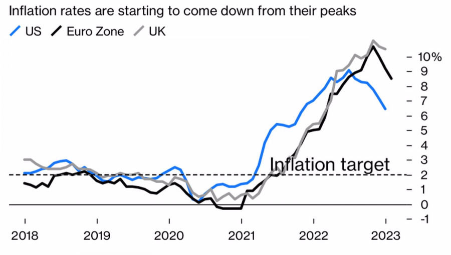 Евро подали дурной примерИнстаФорекс - Instaforex, 2 года назад ЕЦБ опоздал на вечеринку и теперь пытается убедить инвесторов, что уйдет с нее последним. Иначе говоря, европейский Центробанк долго тянул с ужесточением денежно-кредитной политики и сейчас готов повысить ставки на 50 б.п. в марте, в то время как его коллеги из других стран намекают на скорую паузу в процессах монетарной рестрикции. Получается, правда, у Кристин Лагард не очень хорошо. Ее противоречивые высказывания заставили рынок сомневаться в решительности Управляющего совета и на время увели EURUSD ниже 1,09. До февральского заседания инвесторы были уверены, что ЕЦБ прибавит к стоимости заимствований полпункта, что в итоге и произошло. Но зачем тогда француженка сказала, что решение стало плодом компромисса? Не означает ли это, что инсайд Bloomberg, утверждавший в середине января, что Управляющий совет рассматривает, как замедлить процесс ужесточения денежно-кредитной политики, прав? Европейский Центробанк говорит одно, а намерен делать совершенно другое? Дурной пример ФРС заразителен? Динамика ставок центробанков Дальше – больше. Кристин Лагард заявила, что ЕЦБ намерен поднять ставку по депозитам на 50 б.п. и в марте, однако это намерение не является безусловным обязательством. Если так, то в условиях зависимости монетарной политики от данных нельзя исключать увеличения стоимости заимствований на 25 б.п. Похоже, француженка запуталась в собственных словах, стремясь угодить как «ястребам», так и центристам Управляющего совета. Этого и требовалось финансовым рынкам. Не секрет, что ралли EURUSD от уровней сентябрьского дна оказалось ну уж очень стремительным. «Быкам» только и нужен был сигнал для фиксации прибыли по длиннымпозициям. Они получили его в противоречивой риторике главы ЕЦБ. В итоге евро был вынужден отступить с поля боя. На самом деле у Европейского Центробанка действительно есть возможность уйти с вечеринки под названием ужесточение денежно-кредитной политики последним. Инфляция в еврозоне замедляется не так быстро, как в США, а испанские потребительские цены и вовсе начали рисовать новый экстремум. Если то же самое сделает немецкий CPI, срочный рынок поднимет ожидания по потолку ставки по депозитам с менее чем 3,4% до выше 3,5%, что вернет на рынок покупателей EURUSD. Динамика инфляции в еврозоне, Британии и США Что касается ФРС, то, по сути, Джером Пауэлл и его коллеги оказались вне игры. Основной вопрос, который волнует рынки: станут ли они снижать ставку по федеральным фондам в 2023? Хотя Центробанк всячески противится данной идее, но в феврале уже начал ее допускать. Таково мнение рынка. При этом каждый имеет право на свое мнение. Технически на недельном графике EURUSD продолжается реализация паттерна Волны Вульфа. Исходя их проекции из т.5 на линию 1-4 его потенциал весьма приличен. Речь идет о достижении уровня 1,28. Вероятно, в 2024 или в 2025. В любом случае в условиях сильного восходящего тренда откаты евро следует использовать для покупок против доллара США. Материал предоставлен компанией InstaForex - www.instaforex.com |