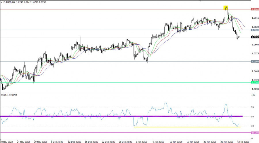 Горящий прогноз по EUR/USD от 07.02.2023ИнстаФорекс - Instaforex, 2 года назад Даже несмотря на пересмотр предыдущих результатов по розничным продажам в зоне евро в лучшую сторону, сами данные оказались заметно хуже прогнозов, что и стало причиной дальнейшего ослабления единой европейской валюты. Предполагалось, что темпы спада розничных продаж замедлятся с -2,8% до -2,6%. Но после того как данные за предыдущий месяц пересмотрели до -2,6%, оказалось, что темпы спада ускорились до -2,8%. Таким образом, вместо улучшении ситуации с потребительской активностью, получили ее ухудшение. И даже если бы пересмотра не было, результат все равно удручающий. Ведь потребительская активность, которую розничные продажи и отражают, является локомотивом экономического роста. Ее спад в принципе исключает возможность какого-либо роста ВВП. Так что зона евро скорее всего не сможет избежать рецессии. Тем более, что фактически, спад розничных продаж длиться уже семь месяцев к ряду. Да не собирается замедляться, а лишь усиливается. И наверное единственное что в этой ситуации может сделать Европейский Центральный Банк, так это смягчить параметры монетарной политики. Иными словами, сейчас уже не остается никаких сомнений в том, что это именно европейский регулятор будет первым из ключевых центральных банков, который начнет снижать процентные ставки. Так что нет ничего удивительного в том, что единая европейская валюта продолжает терять свои позиции. Тем не менее не стоит забывать про явную перекупленность доллара, пусть и локальную, которая создает вероятность отскока, который по идее сегодня и должен случиться, в силу совершенно пустого макроэкономического календаря. Розничные продажи (Европа): Валютная пара EURUSD не просто сумела сохранить инерционный ход вопреки техническому сигналу о перепроданности евро, ей удалось удержаться ниже значения 1.0750. Фактически этот шаг указал на последующее формирование коррекционного хода от пика восходящего тренда. Технический инструмент RSI H4 впервые с начало года оказался ниже контрольного уровня 30, что указывает на перепроданность курса евро. В дневном периоде индикатор RSI находится на самом низком уровне с начало ноября прошлого года, что указывает на замедление восходящего тренда. Скользящие линии MA на Alligator H4 направлены вниз, что соответствует действующему коррекционному ходу. В дневном периоде индикатор имеет первичный сигнал о замедление тренда. На это указывает пересечение зеленой и красной линии MA. Ожидания и перспективы Масштаб ослабления курса евро за 3 торговых дня составляет около 300 пунктов, что само по себе является не типичным движением на рынке. Характерный спекулятивный интерес игнорирует технические сигналы, что допускает дальнейшее формирование инерции. В данном случае последующий нисходящий ход, возможен на рынке, но он все еще не считается отправной точкой к смене действующего среднесрочного тренда. Для того чтобы возникла смена торговых интересов котировке необходимо удержаться ниже уровня 1.0500 в дневном периоде. Однако, стоит не забывать, что перегрев коротких позиций по евро рано или поздно приведет к их фиксации. Это в свою очередь допускает возникновение технического отката относительно действующего инерционного хода. Комплексный индикаторный анализ в краткосрочном и внутридневном периодах им