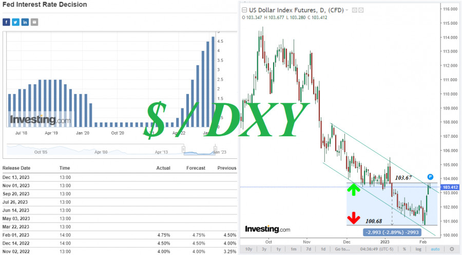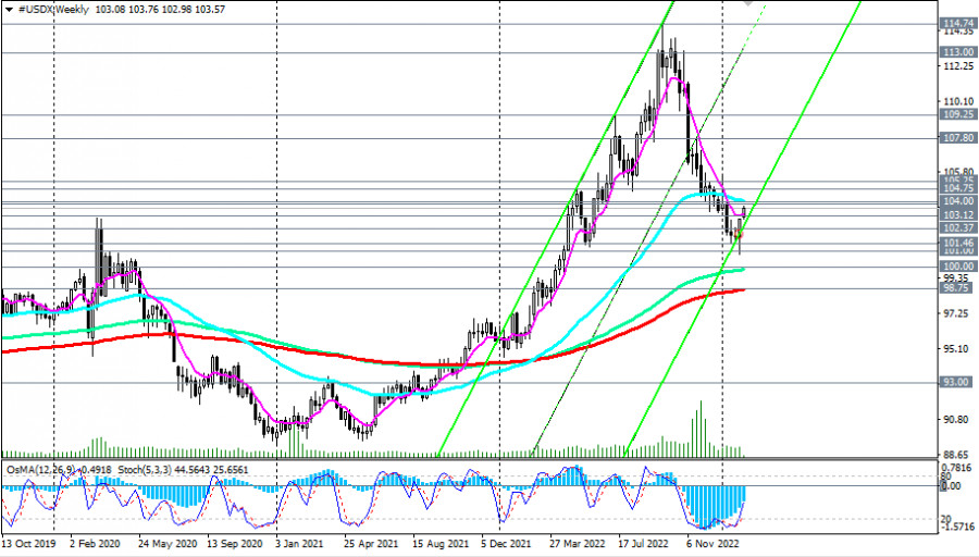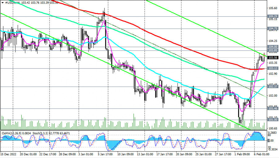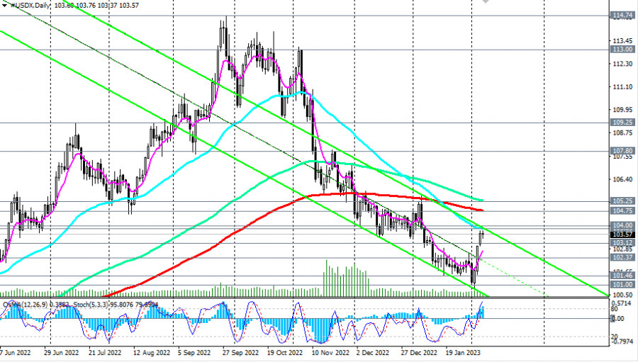Индекс доллара #USDX: сценарии динамики на 07.02.2023ИнстаФорекс - Instaforex, 2 года назад Как мы отметили в нашем сегодняшнем «Фундаментальном анализе», индекс доллара DXY отступает от 4-недельных хаев, достигнутых вчера и в начале сегодняшней европейской торговой сессии, вблизи отметки 103.67: на момент публикации данной статьи фьючерсы DXY торговались вблизи отметки 103.41. Укреплению доллара и росту его индекса способствовал опубликованный в минувшую пятницу сильный отчет Минтруда США с данными за январь. Сразу после публикации данного отчета доллар резко укрепился, а его индекс DXY закрыл торговый день пятницы на отметке 102.75, на 2% выше локального 10-месячного минимума 100.68, достигнутого накануне публикации. Но, как считают экономисты, и как мы отметили в нашем вчерашнем обзоре, этого пока еще недостаточно, чтобы доллар смог переломить негативную динамику. Пробой сегодняшнего локального минимума 103.37 может стать первым самым ранним сигналом для возобновления коротких позиций по DXY (CFD #USDX в торговом терминале МТ4), а пробой важных краткосрочных уровней поддержки 103.12 (ЕМА200 на 4-часовом графике) CFD #USDX, 102.37 (ЕМА200 на 1-часовом графике) – подтверждающим. В случае дальнейшего снижения целями станут ключевые уровни поддержки 100.00 (ЕМА144 на недельном графике), 98.75 (ЕМА200 на недельном графике). Пробой же долгосрочного уровня поддержки 93.00 (ЕМА200 на месячном графике) подтвердит окончательный возврат доллара и его индекса DXY в зону глобального нисходящего тренда. В альтернативном сценарии и после пробоя уровней сопротивления 103.85 (ЕМА50 и верхняя линия нисходящего канала на дневном графике), 104.00 (ЕМА50 на недельном графике) DXY возобновит рост, направившись в сторону ключевых уровней сопротивления 104.75 (ЕМА200 на дневном графике), 105.25 (ЕМА144 на дневном графике). Их пробой подтвердит сценарий возврата DXY в зону долгосрочного бычьего рынка. А сегодня участники рынка, следящие за котировками доллара, будут внимательно слушать выступление главы ФРС Джерома Пауэлла в Экономическом клубе Вашингтона. Оно начнется в 17:40 (GMT). Пауэлл может «качнуть» доллар сегодня как в рост, так и в другую сторону. "По многим показателям рынок труда все еще очень силен", - заявил недавно Пауэлл (о взаимосвязи уровней безработицы и процентных ставок ФРС мы рассуждали в нашей предыдущей статье Dow Jones Industrial Average и американский фондовый рынок: накануне публикации решения ФРС по процентной ставке). Если Пауэлл не коснется вопросов монетарной политики американского ЦБ, то реакция на его выступление будет слабой (о важных событиях недели см. в Важнейшие экономические события недели 06.02.2023 – 12.02.2023). Уровни поддержки: 103.37, 103.12, 103.00, 102.37, 101.46, 101.00, 100.00, 98.75 Уровни сопротивления: 103.85, 104.00, 104.75, 105.25, 107.80, 109.25
