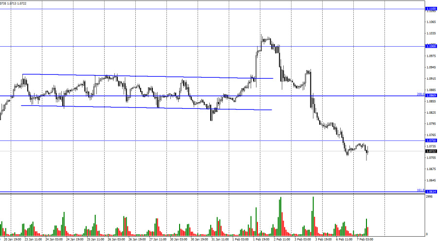 EUR/USD. 7 февраля. Медведи не собираются отступать, евро рискует опустится еще нижеИнстаФорекс - Instaforex, 2 года назад Добрый день, уважаемые трейдеры! Пара EUR/USD в понедельник продолжала процесс падения и выполнила закрепление под уровнем 1,0750. Таким образом, падение котировок теперь может быть продолжено в направлении следующего уровня Фибо 161,8% – 1,0614. Закрепление курса пары над уровнем 1,0750 сработает в пользу валюты ЕС и некоторого роста в направлении коррекционного уровня 200,0%, 1,0869.