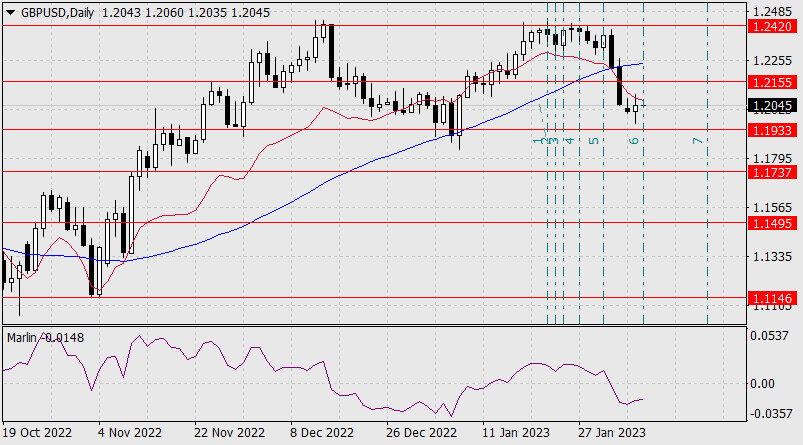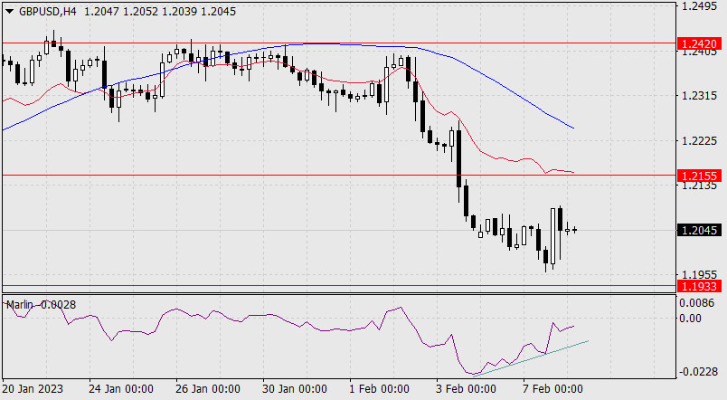 Прогноз по GBP/USD на 8 февраля 2023 годаИнстаФорекс - Instaforex, 2 года назад Фунт стерлингов вчера подрос на 29 пунктов. Учитывая, что сегодня начинается уже третий день коррекции от падения 2-3 февраля, то она уже может и завершиться. Временная зона Фибоначчи по 6-й линии на дневном графике также указывает на вероятный разворот сегодня или завтра. Цели движения 1.1933, 1.1737. Осциллятор Марлин на территории понижающейся тенденции, растёт за ценой вяло и нехотя. Возможен ещё бросок цены к 1.2155, и по основному нашему сценарию он будет последним. Либо, также в рамках основного понижающегося сценария, целевой уровень 1.2155 так и не будет достигнут. |
