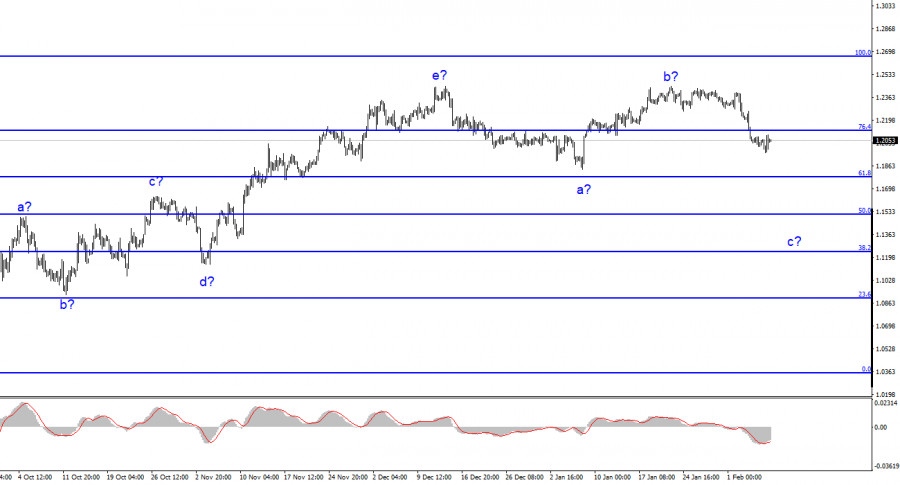 Анализ GBP/USD. 8 февраля. Британец надеется на поддержку ВВПИнстаФорекс - Instaforex, 2 года назад По инструменту Фунт/Доллар волновая разметка на данный момент выглядит довольно сложно, но пока не требует внесения уточнений. Наблюдаются определенные различия между волновыми разметками евро и фунта, но обе предполагают снижение. Мы имеем пятиволновой повышательный участок тренда, который принял вид a-b-c-d-e и, вероятно, уже завершен. Я предполагаю, что начал свое построение понижательный участок тренда, который примет минимум трехволновой вид. Волна b приняла слишком протяженный вид, но все же не отменилась. Таким образом, на прошлой неделе могло начаться построение волны с понижательного участка тренда, цели которой расположены ниже лоу волны а. То есть, как минимум на 200-300 пунктов ниже текущей цены. Я думаю, что волна с может получиться глубже, а весь понижательный участок тренда – даже принять пятиволновой вид. Но сейчас об этом еще рано говорить. Инструмент долгое время был на грани возобновления построения повышательного участка тренда и лишь на прошлой неделе не без помощи новостного фона сумел начать отход котировок от достигнутых пиков. Ставки сделаны, ставок больше нетКурс инструмента Фунт/Доллар во вторник повысился на 30 базовых пунктов. Инструмент сделал попытку вчера вечером начать отход от достигнутых лоу, но она закончилась неудачей. Джером Пауэлл только запутал рынки, так как теперь совершенно неясно, сколько еще будет повышений процентной ставки и сколько будет длиться период максимального размера ставки. Однако выступление Джерома Пауэлл уже в прошлом, а от других членов FOMC мы вряд ли добьемся более конкретных заявлений. Ответ на вопрос «почему?» достаточно прост. В ФРС и сами толком еще не знают, как будет изменяться инфляция в 2023 году, поэтому не могут сделать вывод, какое ужесточение денежно-кредитной политики может еще понадобиться. Стало быть, и не нужно искать ответ на этот вопрос, потому что это бессмысленно. Лучше реагировать на саму инфляцию. Британец, который в последние дни активно снижался, на этой неделе может рассчитывать только на отчет по ВВП в пятницу. Пауэлл, запутав рынки вчера, сделал все, что мог, чтобы помочь фунту, но помощь оказалась слабой. ВВП в четвертом квартале может оказаться лучше, чем сейчас ждут рынки, но гарантии нет никакой. Если экономика Британии в четвертом квартале покажет замедление, то Банк Англии на ближайшем заседании может принять решение о новом снижении темпов повышения ставки. В целом все три центральных банка придерживаются сейчас одинаковой риторики. Все три банка заявляют, что ставки будут продолжать расти, так как инфляция еще очень далека от целевой отметки, которая едина для всех – 2%. Вопрос лишь в том, насколько будет повышена ставка того или иного банка. А на этот вопрос получить ответ сейчас невозможно. Более или менее картина ясна только по ФРС. Там может произойти еще 2-3 повышения по 25 базисных пунктов. Общие выводыВолновая картина инструмента Фунт/Доллар предполагает построение понижательного участка тренда. В данное время можно рассматривать продажи с целями, находящимися около отметки 1,1508, что приравнивается к 50,0% по Фибоначчи. Ордер Стоп Лосс можно было выставить выше пиков волн e и b. Волна с может принять и менее протяженный вид, все будет зависеть теперь о
