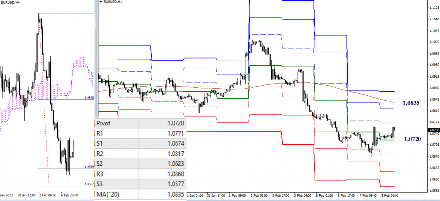 EUR/USD и GBP/USD 8 февраля – технический анализ ситуацииИнстаФорекс - Instaforex, 2 года назад EUR/USD Старшие таймфреймы Протестировав поддержку заключительного уровня дневного креста Ишимоку (1,0693), пара обозначила торможение. Восстанавливать позиции игрокам на повышение сейчас мешает пройденный накануне уровень 1,0758 (дневной среднесрочный тренд + недельный краткосрочный тренд). Как и ожидалось, ранее пройденные уровни в настоящий момент могут работать как сопротивления и сдерживать возврат бычьей активности. Так для игроков на повышение сегодня можно отметить следующие значимые рубежи – 1,0758 – 1,0823-51 (уровни дневного креста) – 1,0930-43 (верхняя граница недельного облака + месячный среднесрочный тренд). Ликвидация дневного золотого креста (1,0693) позволит рассмотреть продвижение к верхней границе дневного облака, усиленного месячной поддержкой 1,0611. Н4 – Н1 Встретив поддержку старших таймов и отработав цель на пробой облака Н4 по первому целевому ориентиру, пара остановила снижение, поднявшись к настоящему моменту выше центрального Пивот уровня дня (1,0720). Ключевое сопротивление младших таймфреймов, от которого зависит состояние действующего баланса сил, в настоящий момент расположено на 1,0835 (недельная долгосрочная тенденция). Промежуточные сопротивления сегодня можно отметить на 1,0771 (R1) – 1,0817 (R2). В случае завершения коррекционного подъёма и возобновления нисходящего движения актуальность внутри дня вернётся к поддержкам классических Пивот уровней (1,0674 – 1,0623 – 1,0577). *** GBP/USD Старшие таймфреймы После медвежьей активности настало время коррекционного торможения. Игроки на повышение исполняют ретест, проверяя прочность уровней пройденных накануне и превращённых в сопротивление. Уровней сопротивлений различных временных интервалов на текущем участке достаточно много, поэтому зона сопротивлений широкая, её ориентиры сейчас можно отметить на 1,2072-98 – 1,2144 – 1,2189 – 1,2215 – 1,2302 – 1,2390. Если сопротивления не позволят восстанавливать бычьи позиции и остановят подъём, то внимание игроков на понижение будет направлено на район 1,1795 – 1,1842 (месячный уровень + нижняя граница дневного уровня). Н4 – Н1 Тестирование важного психологического уровня 1,2000 продолжает удерживать пару в коррекции. Игроки на повышение внутри дня завладели поддержкой центрального Пивот уровня (1,2033). Далее все задачи быков сводятся к результату взаимодействия с недельной долгосрочной тенденцией (1,2151), отвечающей за действующий баланс сил на младших таймах. Дополнительные сопротивления внутри дня сегодня можно отметить на 1,2167 – 1,2239 (классические Пивот уровни), поддержки расположены на 1,1971 – 1,1899 – 1,1837 (классические Пивот уровни). *** При техническом анализе ситуации использованы: старшие таймфреймы – Ichimoku Kinko Hyo (9.26.52) + уровни Фибо Киджун; младшие таймфреймы – Н1 – Pivot Points (классические) + Moving Avarage 120 (недельная долгосрочная тенденция). Материал предоставлен компанией InstaForex - www.instaforex.com |