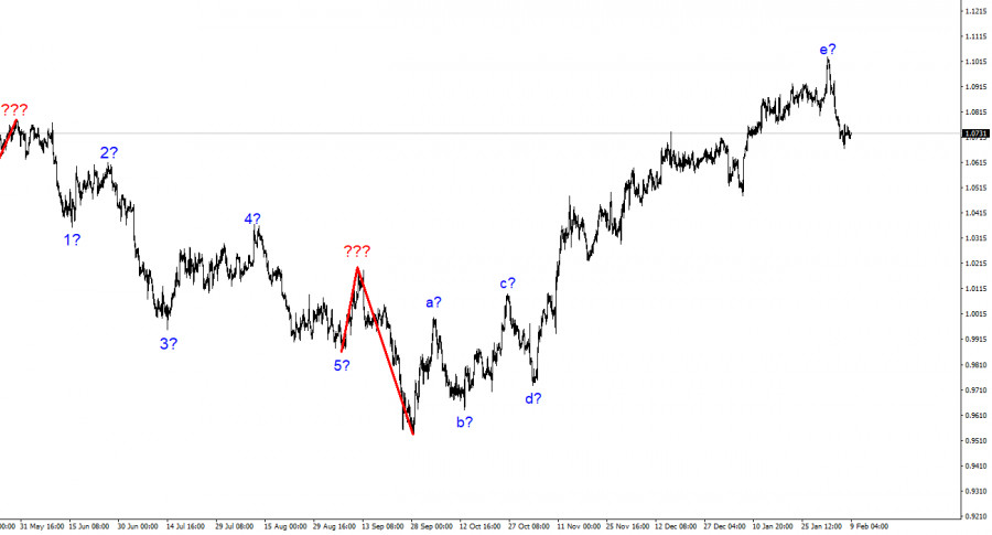 Анализ EUR/USD. 9 февраля. Конец падению инфляции? Новые возможности для евро?ИнстаФорекс - Instaforex, 2 года назад Волновая разметка 4-часового графика для инструмента Евро/Доллар абсолютно не меняется в последнее время, что очень хорошо, так как мы понимаем, как может развиваться ситуация. Повышательный участок тренда принял ярко выраженный коррекционный(хотя его размер больше подходит для импульсного участка) вид. Мы получили структуру волн a-b-c-d-e, в которой волна e имеет гораздо более сложный вид, чем первые четыре волны. Если текущая волновая разметка верна, то построение этой структуры завершено, а волна e получилась гораздо протяженнее всех предыдущих волн. Нас ожидает построение минимум трех волн вниз, поэтому я по-прежнему ожидаю сильного снижения инструмента. В первые недели 2023 года спрос на евровалюту оставался стабильно высоким, а инструмент за этот период времени сумел один раз лишь немного отойти вниз от ранее достигнутых пиков. Однако в начале февраля американская валюта сумела выйти из-под давления рынка, и текущий отход котировок от достигнутых пиков может считаться началом нового понижательного участка тренда, которого я откровенно заждался. Хочется верить, что на этот раз новостной фон и настроение рынка не помешают построению нисходящего набора волн. Выступление Пауэлла взбудоражило рынок.Инструмент Евро/Доллар в среду снизился на 20 базовых пунктов. Амплитуда движений вновь была низкой, так как новостной фон практически отсутствовал. На этой неделе только выступление Пауэлла вызвало реакцию рынка, но, как я уже говорил, рынок не до конца разобрался с тем, что именно имел ввиду президент ФРС, поэтому реакция была смешанной. Зато сегодня утром выйдет отчет, который обычно находится в тени более важных данных. Индекс потребительских цен Германии – это всего лишь инфляция одной из стран Евросоюза. Напомню, что в прошлом месяце некоторые страны показали отрицательную динамику по инфляции, но тогда на это никто не обратил внимание. Сейчас же локомотив экономики ЕС может продемонстрировать новое ускорение индекса потребительских цен. Рынки ожидают, что инфляция вырастет по итогам января с 8,6% до 9,0% г/г и это событие может стать началом конца. Может быть я сильно сгущаю краски, но повышение инфляции в самый разгар ужесточения денежно-кредитной политики ЕЦБ не может означать ничего хорошего. Если инфляция вновь начнет разгоняться в Германии, то можно не сомневаться, что она будет расти и в других странах ЕС. Для евровалюта это потенциально хорошая новость, если бы не одно «но». Инфляция может расти в то время, как ставка ЕЦБ приближается к своему пиковому значению. Если ЕЦБ повысит ставку еще два раза, а инфляция при этом останется на 8-10%, что тогда делать регулятору? Уже сейчас имеются серьезные сомнения в том, что ставка продолжит увеличиваться в 2023 году после анонсированных повышений на 50 и 25 базисных пунктов. Европейский регулятор может просто оказаться в ситуации, когда ставку повышать он уже не может, а инфляция при этом не снижается. У ФРС таких рисков пока нет, что может поддержать спрос на валюту США. Общие выводы.Исходя из проведенного анализа, я делаю вывод, что построение восходящего участка тренда завершено. Таким образом, сейчас можно рассматривать продажи с целями, расположенными около расчетной отметки 1,03