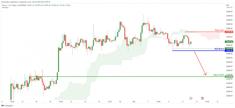 BTC/USD: ожидается падение до уровня поддержки. Прогноз на 9 февраля 2023ИнстаФорекс - Instaforex, 2 года назад На 4-часовом графике пара BTC/USD торгуется в медвежьем тренде. В настоящее время цена находится ниже облака Ишимоку, что указывает на медвежий импульс. Рекомендуется продавать на уровне 22545.80, который находится немного ниже промежуточной поддержки. Стоп-лосс ордер может быть размещен на уровне 23439.00, соответствующем недавнему максимуму. Прибыль может быть зафиксирована на уровне 21310.00, где расположен уровень поддержки. Торговая рекомендация Вход: 22545.80 Условия для входа: область, расположенная чуть ниже промежуточной поддержки Тейк-профит: 21310.00 Условия для фиксации прибыли: уровень поддержки Стоп-лосс: 23439.00 Условия для активации ордера стоп-лосс: недавний максимум Материал предоставлен компанией InstaForex - www.instaforex.com |