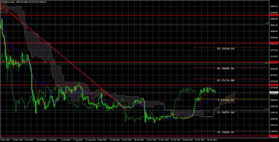Биткоин отступает!ИнстаФорекс - Instaforex, 2 года назад Криптовалюта биткоин подползла к уровню 24 350$ и теперь начала вялое падение. На данный момент котировки первой криптовалюты в мире опустились ниже уровня 23 000$. Пока что вряд ли можно сделать вывод, что начался новый виток «медвежьего» тренда, но все-таки важный уровень 24 350$ взять не удалось, что о многом говорит. Конечно, в будущем не исключены новые тесты этого уровня, возможно даже удачные. Но что будет в будущем мы не знаем, а пока что биткоин начнет минимум корректироваться. На дневном ТФ котировки опустились к критической линии, удачное ее преодоление позволит ожидать продолжение падения вплоть до уровня 20 000$. А там и до важного уровня 18 500$ будет недалеко. Пока что биткоин остается внутри бокового канала 15 500$ - 24 350$. Что касается фундаментального фона, то на этой неделе можно было обратить внимание только на выступление Джерома Пауэлла. На валютном рынке оно спровоцировало довольно серьезные телодвижения, но криптовалютный рынок практически не заметил его. Конечно, в распоряжение криптотрейдеров постоянно поступают новости «локального масштаба». Например, вчера стало известно, что многие ходлеры начали избавляться от биткоина, так как не верят в его дальнейший рост. Стоит также отметить, что и в январе биткоин вырос чуть ли не благодаря чуду. Рост начался после публикации отчета по инфляции в США, но в последних выступлениях Пауэлл и его коллеги активно намекали на то, что ставка ФРС может вырасти сильнее, чем ожидается сейчас. А сейчас ожидается, что она поднимется до 5,25%. Если рынок труда будет оставаться сильным, безработица низкой, а инфляция начнет затормаживать в своем падении, то ставка вполне может вырасти и до 5,75%, и до 6%. Просто сейчас ФедРезерву уже незачем «гнать лошадей» вперед. Инфляция снижается шесть месяцев подряд, может быть текущего размера ставки хватит, чтобы она упала еще на несколько процентов? Зачем зря шокировать экономику и рынки? Поэтому шагом по 0,25% ФРС имеет возможность поднимать ставку еще раз 5-6 совершенно свободно. А для биткоина это, если не приговор, то плохие новости, так как доходность безопасных активов вновь будет расти, а вместе с ней и интерес у инвесторов к ним. На 24-часовом таймфрейме котировки «битка» продолжают находится около уровня 24 350$, который был почти отработан. Так как преодоления не случилось, мы выступаем сейчас за новый виток нисходящего движения, возможно, в рамках бокового канала 15 500$ - 24 350$. Если так, то криптовалюта вполне может упасть в ближайшие 1-2 месяца на 7 000$. Собственно, настолько же, насколько она выросла за последние полтора месяца. До преодоления уровня 24 350$ мы не советуем покупать биткоин. Материал предоставлен компанией InstaForex - www.instaforex.com |