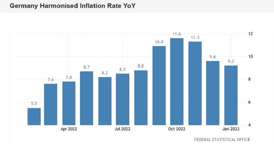 EUR/USD. Инфляция в Германии в январе замедлилась, Федрезерв продолжает подпитывать ястребиные ожиданияИнстаФорекс - Instaforex, 2 года назад Пара евро-доллар пытается развить коррекционный рост, однако данная ценовая динамика выглядит, прямо скажем, аномально. Сложившийся фундаментальный фон не способствует к усилению бычьих настроений. Зыбкие основания для роста Опубликованный сегодня отчёт по росту немецкого индекса потребительских цен отразил замедление инфляции в Германии, подтверждая тем самым общеевропейские тенденции. Данный факт позволяет Европейскому Центробанку смягчить свою риторику относительно дальнейших перспектив ужесточения денежно-кредитной политики. В то же время представители ФРС продолжают демонстрировать ястребиный настрой: выступившие на этой неделе Джером Пауэлл, Лиза Кук и Джон Уильямс фактически опровергли слухи о том, что американский регулятор может досрочно завершить текущий цикл ужесточения монетарной политики. Иными словами, сложившаяся фундаментальная картина не способствует к развитию восходящего тренда. Текущий северный откат eur/usd носит скорее технический характер, на фоне снижения индекса доллара США. При этом экономический календарь четверга практически пуст. Релиз данных по росту немецкой инфляции – единственный значимый отчёт сегодняшнего дня. По мнению большинства валютных стратегов, общий спад американской валюты объясняется возросшим интересом к риску на рынках. Но, как правило, подобные «неаргументированные» ценовые колебания кратковременны. Поэтому к лонгам по паре eur/usd сейчас следует относиться с особой осторожностью, так как цена растёт на достаточно зыбких основаниях. «Красный окрас» немецкой инфляции В целом немецкая инфляция удивила: почти все компоненты сегодняшнего отчёта вышли в красной зоне. Так, в годовом исчислении общий индекс потребительских цен в январе продолжил нисходящую динамику, снизившись до отметки 8,7% (при прогнозе спада до 8,9%). Для сравнения можно отметить, что в октябре был зафиксирован пик на отметке 10,4%. Но с ноября 2022 года фиксируется нисходящий тренд. Достаточно слабый результат продемонстрировал и гармонизированный индекс потребительских цен – как в месячном (0,5% при прогнозе 1,2%), так и в годовом выражении (9,2% при прогнозе 10,0%). Здесь необходимо напомнить, что в декабре власти Германии оплатили счета за газ большинству немецких домохозяйств. Но это была единовременная выплата, следовательно, в прошлом месяце потребительские счета за энергоносители снова выросли (т.е. в январе немцы вновь оплачивали в полном объеме поставки газа). Данный фактор отразился на общем ИПЦ в месячном исчислении (в январе он вырос на 1,0% при прогнозе роста на 0,9%), тогда как все остальные компоненты отчёта вышли в «красной зоне», отразив замедление инфляции в стране. Как правило, немецкий релиз публикуется за день до публикации общеевропейского инфляционного отчёта, но в этот раз дату пришлось перенести из-за проблем, возникших в ходе изменения методики подсчета немецких данных. При этом на Германию приходится около четверти всех ценовых данных, используемых для расчета инфляции в еврозоне. О чём говорит немецкий отчёт Замедление инфляции в Германии – ещё один тревожный звоночек для покупателей пары eur/usd. Напомню, что в целом по еврозоне общий индекс потребитель