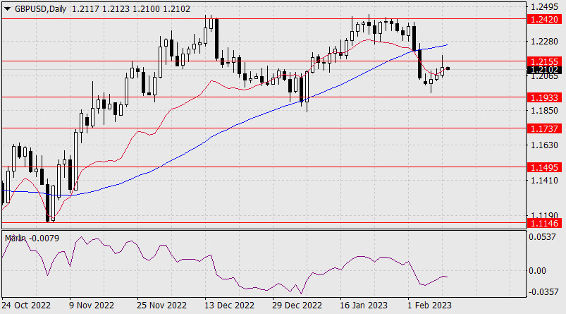 Прогноз по GBP/USD на 10 февраля 2023 годаИнстаФорекс - Instaforex, 2 года назад Наш расчёт на разворот британского фунта в четверг не оправдался. Наоборот, фунт вырос на 50 пунктов. Правда, верхняя тень выше ещё на 75 пунктов, и это уже само по себе хороший признак разворота. От инструмента временной шкалы Фибоначчи пришлось отказаться. Идейно ничего не изменилось. Мы ждём ослабление фунта стерлингов вместе с другими валютами по причине глобального укрепления доллара. Сегодня фунт даже может пойти на опережение рынка, так как по Великобритании ожидаются ослабленные экономические данные. ВВП за 4-й квартал прогнозируется с нулевым приростом, декабрьский ВВП может показать спад на 0,3%, снижение годового ВВП ожидается до 0,4% с прежних 1,9%, объём промышленного производства за декабрь может показать спад на 0,2%, ухудшение торгового сальдо ожидается до -16,4 млрд фунтов стерлингов с прежнего -15,6 млрд.