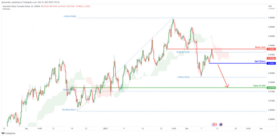 AUD/CAD развивает медвежий импульс. Прогноз на 10 февраля 2023ИнстаФорекс - Instaforex, 2 года назад На 4-часовом графике пара AUD/CAD торгуется в медвежьем тренде. В настоящее время цена находится ниже облака Ишимоку, что указывает на медвежий импульс. Рекомендуется продавать на уровне 0.93032 с целью пробития ценой локального минимума. Стоп-лосс ордер может быть установлен на уровне 0.93802, соответствующем уровню сопротивления. Прибыль может быть зафиксирована на уровне 0.91709, где расположены уровень поддержки и уровень коррекции Фибоначчи 78.6%. Торговая рекомендация Вход: 0.93032 Условия для входа: с целью пробития ценой локального минимума на фоне развития медвежьего импульса Тейк-профит: 0.91709 Условия для фиксации прибыли: уровень поддержки и 78.6% уровень коррекции Фибоначчи Стоп-лосс: 0.93802 Условия для активации ордера стоп-лосс: уровень сопротивления Материал предоставлен компанией InstaForex - www.instaforex.com |