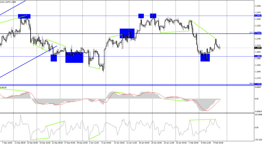 GBP/USD. 10 февраля. Экономика Великобритании находится на грани рецессииИнстаФорекс - Instaforex, 3 года назад Добрый день, уважаемые трейдеры! На часовом графике пара GBP/USD в четверг выполнила сильный рост в направлении уровня 1,2238, но в пятницу оказалась под уровнем коррекции 127,2% - 1,2112. В последние дни британец старался восстановить часть потерянных еще на прошлой неделе позиций. Отчасти ему это удалось. Возможно, трейдеры-быки продолжили бы наступление, если бы сегодня не вышли довольно слабые данные по британской экономике. Закрепление курса пары под уровнем 1,2112 не дает преимущества медведям, торги нестабильны. ВВП Великобритании в четвертом квартале вырос на 0%. ВВП Великобритании в третьем квартале пересмотрен в сторону понижения до -0,2% кв/кв. Об этом сегодня заявило Управление статистики в ежемесячном отчете. Напомню, что британская экономика уже давно ходит по краю бездны, а первые лица страны еще несколько месяцев назад говорили о рецессии как о само собой разумеющемся факте. Никто не сомневается в том, что рецессия будет идти рука об руку с экономикой в 2023 году и даже в 2024 году. Но пока можно сказать, все не так плохо, как могло бы быть. Падение на 0,2% в третьем квартале – это не так уж много на фоне 10 повышений процентной ставки центральным банком. Экономика не растет, но практически не падает. Если следующие 5 кварталов (как говорил Эндрю Бейли) будут с таким же сокращением, то оно будет практически незаметным. Отсюда следует: не экономика сейчас главная проблема Лондона, а инфляция! Инфляция остается стабильно высокой, и у Банка Англии нет опции закончить ужесточение ДКП. Дальнейшее повышение ставки ускорит наступление момента, когда экономика будет падать каждый месяц и каждый квартал, но и инфляция оставлять выше 10% тоже нельзя. Ведь вопрос сейчас стоит не в том, что инфляция снижается медленно! Она вообще не снижается, если не брать последние два месяца с минимальным замедлением. После паузы в несколько недель британец может возобновить рост на фоне будущих повышений ставки Банком Англии. На 4-часовом графике пара выполнила разворот в пользу американской валюты после образования «медвежьей» дивергенции у индикатора CCI. Таким образом, начался процесс падения в направлении уровня 1,2008. Новых назревающих дивергенций не наблюдается ни у одного индикатора, а закрытие под уровнем 1,2008 повысит вероятность дальнейшего падения в направлении следующего уровня Фибо 161,8% - 1,1709. Отчет Commitments of Traders (COT):