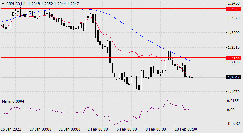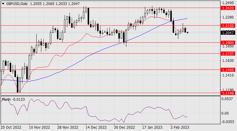 Прогноз по GBP/USD на 13 февраля 2023 годаИнстаФорекс - Instaforex, 3 года назад Сегодня утром фунт стерлингов продолжает нисходящее движение, начатое в минувшую пятницу. На дневном графике цена уже ниже индикаторной линии баланса (красной скользящей), осциллятор Марлин разворачивается вниз в зоне нисходящей тенденции.
