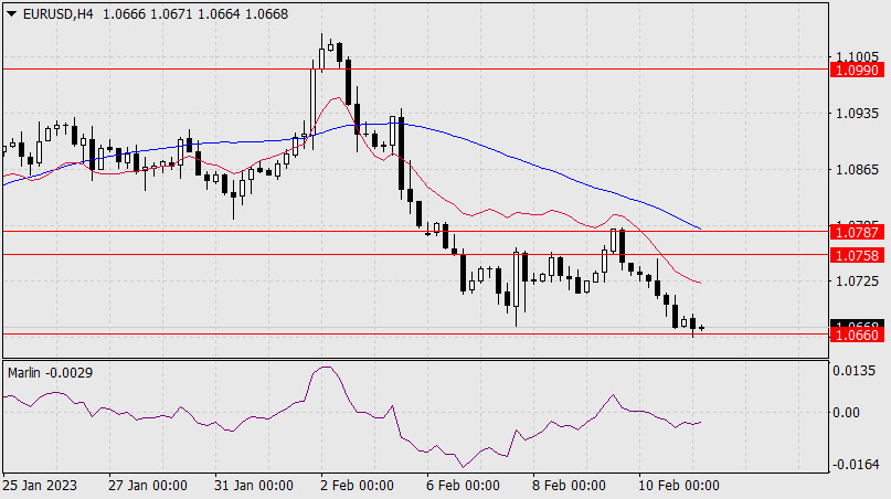 Прогноз по EUR/USD на 13 февраля 2023 годаИнстаФорекс - Instaforex, 3 года назад Пятничное снижение евро составило 62 пункта. Цена очень близко приблизилась к уровню 1.0660 – к верхней границе диапазона консолидации 16-26 декабря. Преодоление поддержки отправит цену к 1.0595, далее возможно продолжение нисходящей тенденции до целевого уровня 1.0470 – к минимумам 22 июня и 28 апреля прошлого года. Также данный уровень близок к 38%-й коррекции от всего роста с 28 сентября.