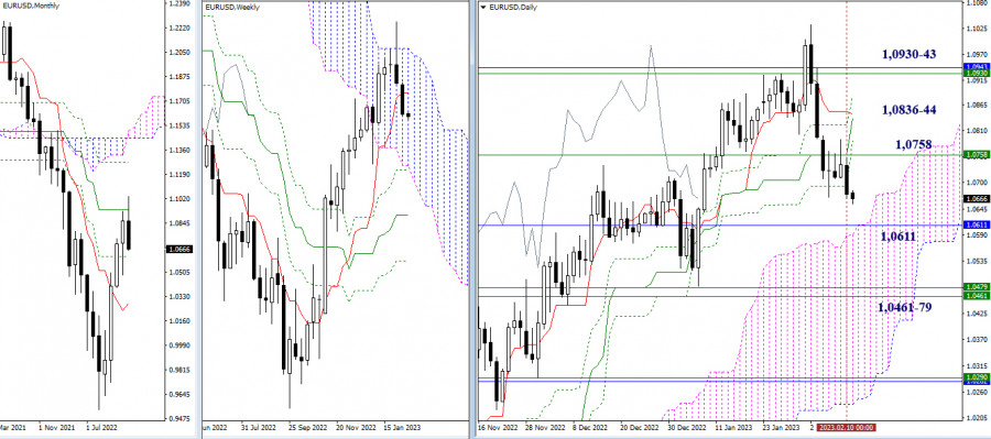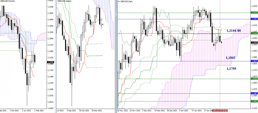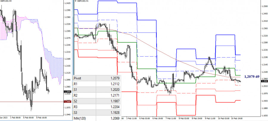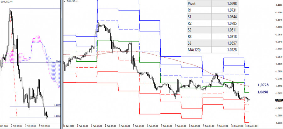 EUR/USD и GBP/USD 13 февраля – технический анализ ситуацииИнстаФорекс - Instaforex, 3 года назад EUR/USD Старшие таймфреймы Прошлую неделю игроки на понижение закрыли с результатом преобладания медвежьих настроений, подтвердив и продолжив тем самым отбой от верхней границы недельного облака. Следующими понижательными ориентирами на текущем участке пути являются районы 1,0590 – 1,0611 (верхняя граница дневного облака + месячный уровень) и 1,0461-79 (нижняя граница недельного облака + недельный Фибо Киджун). Если сегодня обнаружится смена приоритетов и активность перейдёт на сторону быков, то для игроков на повышение основное значение на данном этапе будут иметь пройденные за время снижения уровни, которые сейчас выполняют роль сопротивлений на 1,0758 (недельный краткосрочный тренд) – 1,0836-44 (дневной крест) – 1,0930-43 (верхняя граница недельного облака + месячный среднесрочный тренд). Н4 – Н1 На младших таймах игроки на понижение сохраняют основное преимущество. Сегодня ими протестирован уровень 100% отработки цели на пробой облака Н4 (1,0662). Возможно более длительное торможение. Если же игроки на понижение преодолеют цель Н4, то далее ориентирами для снижения внутри дня сегодня являются поддержки классических Пивот уровней дня 1,0644 – 1,0611 – 1,0557. Если будет наблюдаться развитие восходящего коррекционного движения, то ключевые уровни младших таймов первыми встретят игроков на повышение, а борьба за них будет определять возможности действующего баланса сил. Ключевые уровни сегодня расположены на 1,0698 (центральный Пивот уровень дня) и 1,0728 (недельная долгосрочная тенденция). Закрепление выше и разворот мувинга повлияют на распределения сил, создав предпосылки для усиления бычьих настроений. Следующие повышательные ориентиры внутри дня можно сегодня отметить на 1,0785 и 1,0818 (классические Пивот уровни дня). *** GBP/USD Старшие таймфреймы Прошлая недельная свеча имеет характер неопределённости. Игроки на понижение не смогли перекрыть достижения соперника, исполнившего ретест пробитых уровней. Если на этой неделе медведи сумеют обновить минимум (1,1960) и продолжат снижение, то их основным ориентиром станет зона поддержек в районе 1,1842 – 1,1795 (месячный уровень + нижняя граница дневного облака). Если же игроки на повышение сумеют удержать ситуацию и вернут пару в район протестированных сопротивлений (1,2144 – 1,2180 – 1,2203), то неопределённость и консолидация могут затянуться, а так же возможно новое усиление игроков на повышение и продолжение восстановления позиций. Н4 – Н1 Игроки на понижение завладели ключевыми уровнями младших таймфреймов, но не смогли выполнить следующие два важных условия того, что позволит им завладеть преимуществом в сложившейся ситуации, поэтому текущие задачи игроков на понижение остаются прежними. Для дальнейшего усиления медвежьих настроений паре нужно преодолеть значимый психологический уровень (1,2000) и выйти за пределы минимального экстремума (1,1960). Для игроков на повышение важно вернуть себе ключевые уровни 1,2069-79 (центральный Пивот уровень дня + недельная долгосрочная тенденция), далее при продолжении подъёма внимание внутри дня будет направлено на преодоление сопротивлений классических Пивот уровней 1,2112 – 1,2171 – 1,2204. *** При техническом анализе ситуации использованы: старшие таймфреймы – Ichimoku Kinko Hyo (9.26.52) + уровни Фибо Киджун; младшие таймфрей