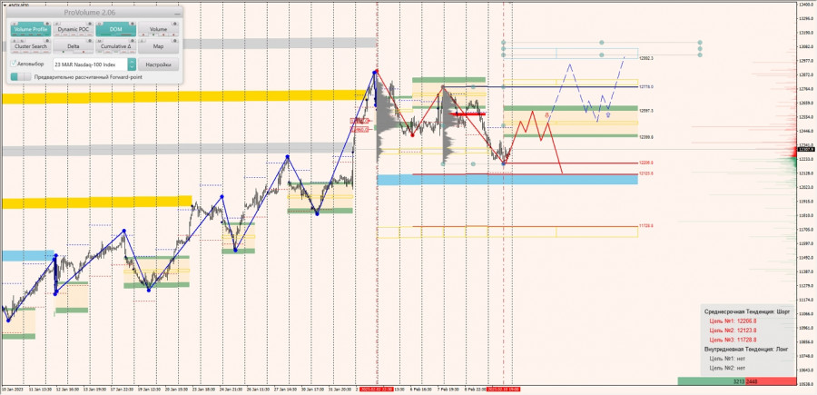 Альтернативный сценарий: при закреплении котировок индекса Nasdaq выше зоны 1/2 (12636.8) при откатах искать покупки по паттерну в новом диапазоне выгодных цен с целями: обновление максимумов и тестирование нижней границы НКЗ (12992.3).