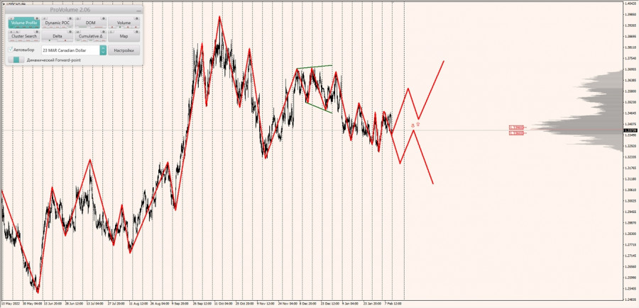 Долгосрочная тенденция: в шорт. Максимальное скопление объемов текущего контракта расположено в диапазоне по котировкам 1.33600-1.33900. В настоящий момент по паре совершаются инвестиционные операции внутри указанного диапазона, указывая на временную неопределенность.