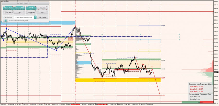 Среднесрочная тенденция: в шорт. Максимальное скопление объемов среднесрочной тенденции расположено в диапазоне по котировкам 0.64680-0.64780. В настоящий момент по паре совершаются инвестиционные операции ниже, указывая на силу продавцов.