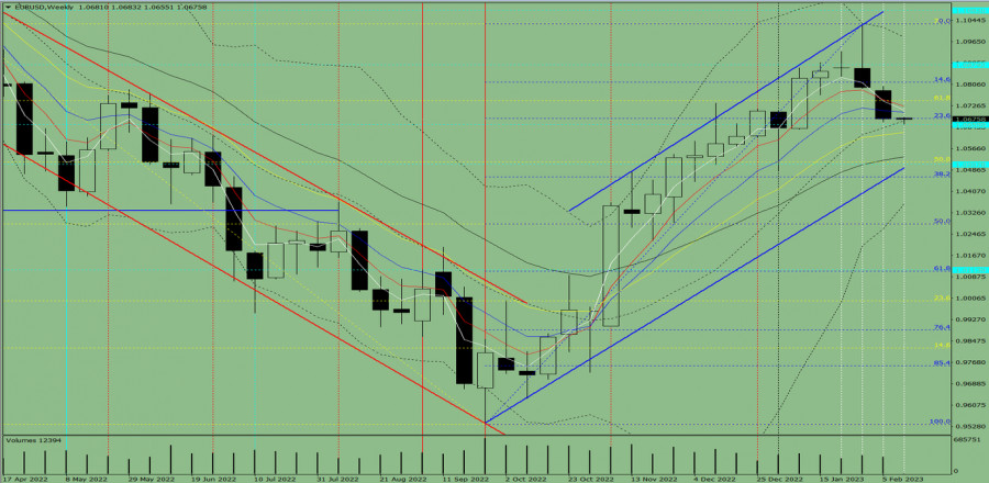 Технический анализ на неделю с 13 по 18 февраля, валютная пара EUR/ USD.ИнстаФорекс - Instaforex, 2 года назад Трендовый анализ (рис. 1). На этой неделе рынок от уровня 1.0676 (закрытие последней недельной свечи) может продолжить движение вниз с целью 1.0494 – линия поддержки (синяя жирная линия). По достижении этой линии возможна работа вверх. Рис. 1 (недельный график). Комплексный анализ: - индикаторный анализ – вниз; Вывод по комплексному анализу: нисходящее движение. Общий итог расчёта свечи валютной пары EUR/USD по недельному графику: цена на неделе, вероятней всего, будет иметь нисходящую тенденцию с отсутствием первой верхней тени у недельной чёрной свечи (понедельник – вниз) и отсутствием второй нижней тени (пятница – вниз). На этой неделе рынок от уровня 1.0676 (закрытие последней недельной свечи) может продолжить движение вниз с целью 1.0494 – линия поддержки (синяя жирная линия). По достижении этой линии возможна работа вверх. Альтернативный сценарий: пара от уровня 1.0676 (закрытие последней недельной свечи) может продолжить движение вниз с целью 1.0622 – 13 средняя ЕМА (жёлтая тонкая линия). По достижении этой линии возможно продолжение работы вверх. Материал предоставлен компанией InstaForex - www.instaforex.com |