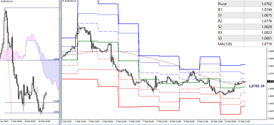 EUR/USD и GBP/USD 14 февраля – технический анализ ситуацииИнстаФорекс - Instaforex, 2 года назад EUR/USD и GBP/USD 14 февраля – технический анализ ситуации EUR/USD Старшие таймфреймы В первый день новой недели медвежьи настроения вновь сменились на активность быков. В результате пара вернулась в зону прошлой консолидации. Общая ситуация и расположение ранее обозначенных ориентиров не изменились. Для игроков на повышение важны рубежи сопротивлений на 1,0758 (недельный краткосрочный тренд) – 1,0844 (дневной крест) – 1,0930-43 (верхняя граница недельного облака + месячный среднесрочный тренд). Для игроков на понижение приготовлены поддержки в районах 1,0611 (верхняя граница дневного облака + месячный уровень) и 1,0461-79 (нижняя граница недельного облака + недельный Фибо Киджун). Н4 – Н1 Исполнение цели на пробой облака Н4 (1,0662) не просто затормозило движение, но и привело к развитию коррекционного подъёма. Игрокам на повышение при этом удалось вернуть себе ключевые уровни младших таймфреймов, поэтому они сейчас обладают основным преимуществом, а ключевые уровни служат сегодня поддержками, располагаясь на 1,0702-19 (центральный Пивот уровень + недельная долгосрочная тенденция). Пробой ключевых уровней будет вновь влиять на баланс сил. Если же игроки на повышение удержат данные рубежи и продолжат подъём, то следующими повышательными ориентирами внутри дня станут сопротивления классических Пивот уровней (1,0749 – 1,0776 – 1,0823). *** GBP/USD Старшие таймфреймы Неопределённость прошлой недели сохраняется. Она не позволила игрокам на понижение развивать снижение и вернула пару в зону притяжения недельного краткосрочного тренда (1,2144). Далее выше последовательно расположены сопротивления различных временных интервалов (1,2180 – 1,2203 – 1,2261 – 1,2302 – 1,2373). Новые горизонты и возможности для игроков на повышение появятся лишь после прохождения всех уровней и надёжного закрепления выше. Н4 – Н1 В настоящий момент на младших таймах преимуществом обладают игроки на повышение. Ключевые уровни формируют основную поддержку бычьих интересов, располагаясь на рубежах 1,2106 (центральный Пивот уровень дня) и 1,2083 (недельная долгосрочная тенденция). Продолжение подъёма будет усиливать бычьи настроения, в качестве ориентиров на этом пути внутри дня будут использоваться сопротивления классических Пивот уровней (1,2181 – 1,2227 – 1,2302). Потеря ключевых уровней (1,2106 – 1,2083) повлияет на действующий баланс сил, а ориентирами для движения выступят поддержки классических Пивот уровней (1,2060 – 1,1985 – 1,1939). *** При техническом анализе ситуации использованы: старшие таймфреймы – Ichimoku Kinko Hyo (9.26.52) + уровни Фибо Киджун; младшие таймфреймы – Н1 – Pivot Points (классические) + Moving Avarage 120 (недельная долгосрочная тенденция). Материал предоставлен компанией InstaForex - www.instaforex.com |