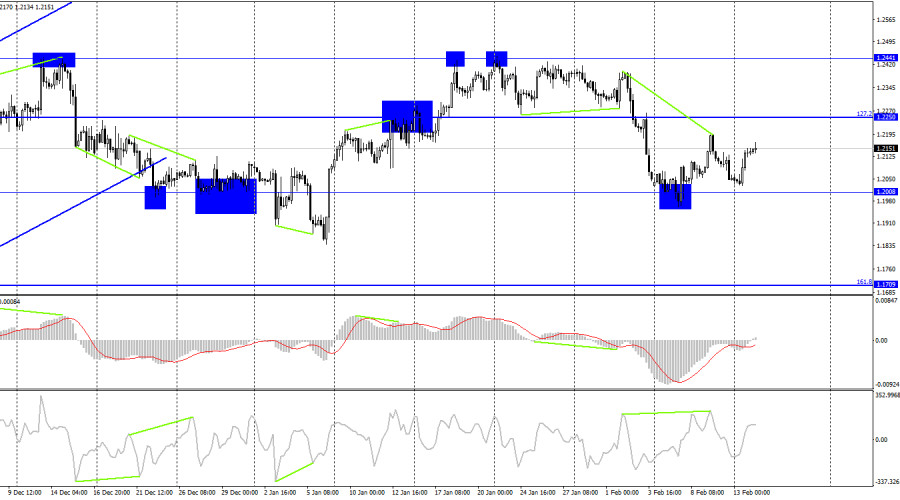 GBP/USD. 14 февраля. Британцу понравился отчет по безработицеИнстаФорекс - Instaforex, 2 года назад Добрый день, уважаемые трейдеры! На часовом графике пара GBP/USD в понедельник выполнила закрепление над уровнем коррекции 127,2%, 1,2112, и над нисходящей трендовой линией. Таким образом, настроение трейдеров изменилось на «бычье», а процесс роста может быть продолжен в направлении уровня 1,2238. Однако сегодня во второй половине дня выйдет отчет по инфляции в США, после которого медведи могут вновь перехватить инициативу, так как есть основания предполагать, что он окажется очень неожиданным. Однако не будем забегать вперед и пока рассмотрим те отчеты, которые вышли сегодня утром в Британии. Уровень безработицы по итогам декабря составил 3,7%, не показав никакого изменения в сравнении с ноябрем. Некоторые экономисты ожидали, что безработица вырастет до 3,8%, но этого не произошло, что, безусловно, является хорошей новостью для британца. Средние заработные платы выросли в декабре на 5,9%, что ниже прогнозов, однако очень сильно выросли бонусные выплаты, на 6,7%, что уже выше ожиданий трейдеров. В целом рынок воспринял пакет экономической статистики позитивно, британец укрепился, но во второй половине дня ситуация может измениться. Если инфляция в США неожиданно вырастет, это может вызвать резкое укрепление американской валюты. Те отчеты, которые вышли сегодня в Великобритании, безусловно, важны, но не они имеют сейчас первостепенное значение для трейдеров. Куда более важны выступления членов FOMC на этой неделе, особенно те, которые будут сделаны после выхода отчета по инфляции. И особенно, если инфляция покажет какой-либо неожиданный результат. А завтра уже в Британии выйдет отчет по инфляции, от которого крайне сложно ожидать неожиданностей, так как отсутствие снижения или вообще рост не является неожиданностью в случае с Великобританией. Инфляция там продолжает оставаться на высоком уровне, и Центральный банк пока ничего не может с ней поделать. На 4-часовом графике пара выполнила разворот в пользу британца и начала процесс роста в направлении уровня коррекции 127,2%, 1,2250. Отбой котировок от этого уровня сработает в пользу валюты США и нового падения в направлении уровня 1,2008. Новых назревающих дивергенций сегодня не наблюдается ни у одного индикатора. Закрытие курса пары над уровнем 1,2250 повысит шансы на дальнейший рост в направлении следующего уровня 1,2441. Отчет Commitments of Traders (COT):