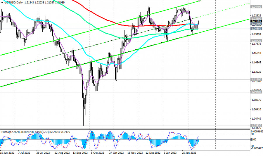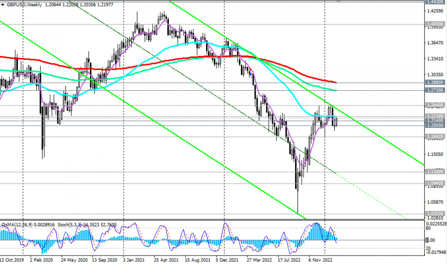 GBP/USD: сценарии динамики на 14.02.2023ИнстаФорекс - Instaforex, 2 года назад Как известно, ранее в этом месяце Банк Англии повысил процентную ставку сразу на 0,50%, доведя ее до исторического максимума 4,0%. Но несмотря на это, фунт не смог извлечь особой выгоды из этого решения. Как мы отметили в нашем недавнем обзоре, экономисты предрекают Великобритании неизбежный экономический спад и рецессию. В этой связи они считают, что Банк Англии в следующем году, а может быть и раньше, пойдет на смягчение политики, чтобы поддержать экономику, невзирая на высокую инфляцию. Тем не менее дополнительную информацию относительно перспектив монетарной политики Банка Англии участники рынка получат уже завтра, когда в 07:00 будут опубликованы свежие данные по инфляции в Великобритании. А сегодня они будут следить за публикацией 13:30 (GMT) отчета Бюро трудовой статистики США с данными по инфляции в стране на январь (о важных событиях недели см. в Важнейшие экономические события недели 13.02.2023 – 19.02.2023). В прошлом месяце на фоне слабости американского доллара, пара GBP/USD смогла скорректироваться с локального минимума 1.1842 и достичь отметки 1.2440. В то же время, как мы отметили в нашем сегодняшнем «Фундаментальном анализе», после завершения восходящей коррекции, начавшейся в конце сентября, с декабря прошлого года GBP/USD легла «в дрейф», торгуясь в рамках относительно широкого (600 пунктов) диапазона, между отметками 1.2440 и 1.1840 и вблизи среднесрочной линии баланса, выраженной в данном случае важным уровнем поддержки 1.2140 (ЕМА200 на дневном графике). Чтобы вырваться из данного диапазона, паре GBP/USD нужны новые сильные драйверы. Возможно, она их получит сегодня и завтра, когда по США, а затем по Великобритании, будут опубликованы свежие данные по инфляции. В случае дальнейшего роста и после пробоя важного уровня сопротивления 1.2230 (ЕМА50 на недельном графике), GBP/USD направится в сторону ключевых уровней сопротивления 1.2730 (ЕМА144 на недельном графике), 1.2880 (ЕМА200 на недельном графике). В альтернативном сценарии логично предположить отбой от уровня сопротивления 1.2230 и возобновление снижения. Пробой уровня поддержки 1.2055 усилит нисходящую динамику GBP/USD, а пробой локального уровня поддержки 1.1842 (минимумы 2023 года) подтвердит возобновление глобального нисходящего тренда GBP/USD. *) об особенностях торговли GBP/USD см. в статье GBP/USD: валютная пара (характеристики, рекомендации) Уровни поддержки: 1.2140, 1.2100, 1.2055, 1.2000, 1.1842, 1.1160, 1.0940 Уровни сопротивления: 1.2200, 1.2230, 1.2300, 1.2400, 1.2440, 1.2500, 1.2600, 1.2730, 1.2800, 1.2880