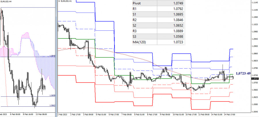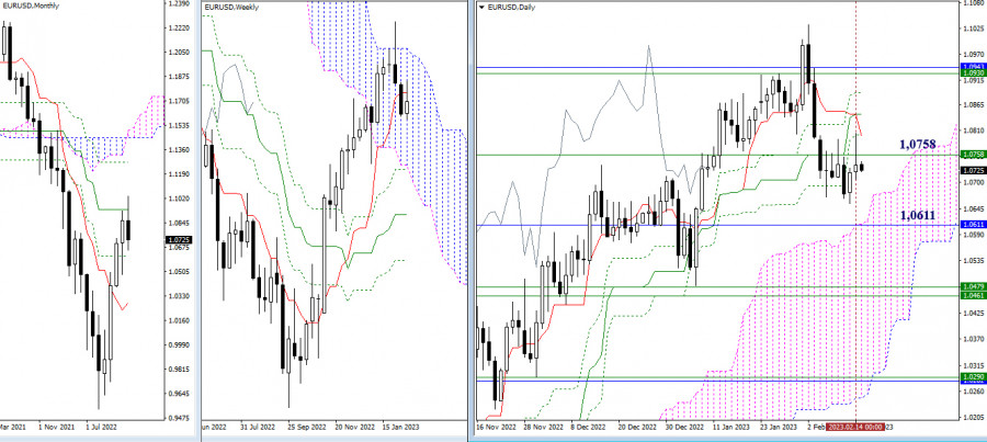 EUR/USD и GBP/USD 15 февраля – технический анализ ситуацииИнстаФорекс - Instaforex, 2 года назад EUR/USD Старшие таймфреймы Очередное тестирование сопротивлений, важных для данного участка, завершилось вчера длинной верхней тенью на дневной свече. Игроки на повышение не сумели добиться положительного результата и вернулись в зону консолидации и неопределённости. В результате ближайшие сопротивления дневного креста Ишимоку (1,0800 – 1,0844 – 1,0889), усиленные недельным краткосрочным трендом, по-прежнему являются наиболее важными препятствиями на пути игроков на повышение. В свою очередь задачи текущего этапа для игроков на понижение заключаются в преодолении месячной поддержки (1,0611) и закреплении в дневном облаке Ишимоку. Н4 – Н1 В настоящий момент пара пытается закрепиться выше ключевых уровней младших таймов, объединивших свои усилия в районе 1,0723-49 (центральный Пивот уровень + недельная долгосрочная тенденция). Работа выше ключевых уровней отдаёт основное преимущество игрокам на повышение и формирует условия для усиления бычьих настроений. Следующими повышательными ориентирами внутри дня являются сопротивления классических Пивот уровней (1,0792 – 1,0846 – 1,0889). Можно отметить, что сегодня все повышательные ориентиры младших таймов имеют своё подтверждение на более старших временных интервалах, так как сопротивления классических Пивот уровней усилены сопротивлениями дневного креста Ишимоку. Если пара в очередной раз спустится под ключевые уровни (1,0723-49) и закрепится там, то можно ожидать изменения действующего баланса сил и последующего усиления медвежьих настроений. Понижательными ориентирами внутри дня являются поддержки классических Пивот уровней (1,0695 – 1,0652 – 1,0598). *** GBP/USD Старшие таймфреймы Тестирование сопротивлений вновь не принесло положительного результата в дневном формате. Вчерашняя свеча имеет длинную верхнюю тень. Заключительные уровни дневного креста Ишимоку (1,2203 – 1,2261) остаются не пройденными сопротивлениями, при этом оставшиеся уровни дневного креста и недельного краткосрочного тренда (1,2115 – 1,2144) выполняют сейчас роль притяжений, а на более младших таймах они служат текущими поддержками. В настоящий момент ситуация по-прежнему не имеет ярко выраженного приоритета в движении. Для игроков на повышение остаются не пройденными сопротивления 1,2203 – 1,2261 – 1,2302 – 1,2373. Для игроков на понижение значение имеет закрепление в дневном облаке Ишимоку (1,2083) и тестирование следующих поддержек 1,1842 – 1,1795 (месячный уровень + нижняя граница дневного облака). Н4 – Н1 Основное преимущество на младших таймах продолжает оставаться на стороне игроков на повышение, хотя они к настоящему моменту потеряли поддержку центрального Пивот уровня (1,2185), который теперь присоединился к повышательным внутридневным ориентирам сегодняшнего дня 1,2185 – 1,2254 – 1,2337 – 1,2406 (классические Пивот уровни). Ключевой поддержкой сейчас является недельная долгосрочная тенденция (1,2113), её потеря может повлиять на действующий баланс сил. Следующие поддержки расположены сегодня на 1,2102 – 1,2033 – 1,1950. *** При техническом анализе ситуации использованы: старшие таймфреймы – Ichimoku Kinko Hyo (9.26.52) + уровни Фибо Киджун; младшие таймфреймы – Н1 – Pivot Points (классические) + Moving Avarage 120 (недельная долгосрочная тенденция). Материал предоставлен компанией InstaForex - www.instaforex.com |