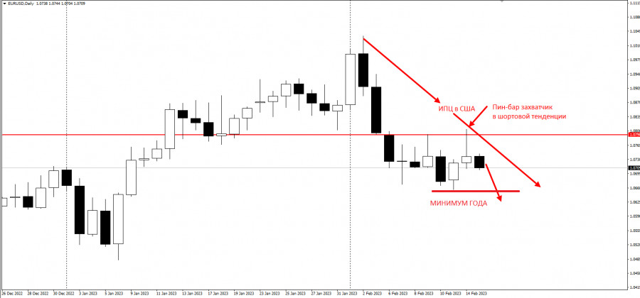 Инфляция в США застала трейдеров врасплох (как и NFP)ИнстаФорекс - Instaforex, 2 года назад Добрый день, уважаемые трейдеры! Представляю вашему вниманию торговую идею по EURUSD. Итак, вчера вышли сильные данные по инфляции в США, которые показали рост потребительских цен вопреки ожиданиям аналитиков: Как видно по графику, перед новостью трейдеры активно играли на ослабление доллара, толкая пару EURUSD вверх, но после выхода данных настроения резко сменились: Таким образом, на Д1 появился новостной пин-бар захватчик в шортовой тенденции: В этой ситуации рекомендуем работать на понижение на пробой минимума текущей недели: Торговая идея представлена в рамках метода "Price Action" и "Охота за стопами". |