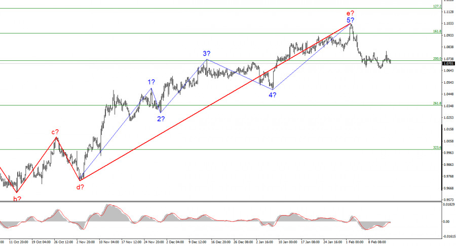 Анализ EUR/USD. 15 февраля. Вероятность повышения ставки ФРС три раза растетИнстаФорекс - Instaforex, 2 года назад Волновая разметка 4-часового графика для инструмента Евро/Доллар абсолютно не меняется в последнее время, что очень хорошо, так как мы понимаем, как может развиваться ситуация. Повышательный участок тренда принял ярко выраженный коррекционный (хотя его размер больше подходит для импульсного участка) вид. Мы получили структуру волн a-b-c-d-e, в которой волна e имеет гораздо более сложный вид, чем первые четыре волны. Если текущая волновая разметка верна, то построение этой структуры завершено, а волна e получилась гораздо протяженнее всех предыдущих волн. Нас ожидает построение минимум трех волн вниз, поэтому я по-прежнему ожидаю сильного снижения инструмента. В первые недели 2023 года спрос на евровалюту оставался стабильно высоким, а инструмент за этот период времени сумел один раз лишь немного отойти вниз от ранее достигнутых пиков. Однако в начале февраля американская валюта сумела выйти из-под давления рынка, и текущий отход котировок от достигнутых пиков может считаться началом нового понижательного участка тренда, которого я откровенно заждался. Хочется верить, что на этот раз новостной фон и настроение рынка не помешают построению нисходящего набора волн. Инфляция в США замедлилась, спрос на инструмент не изменилсяИнструмент Евро/Доллар в среду явно не определился с направлением торгов. Если до отчета по инфляции повышалась евровалюта, то после отчета – уже доллар. В какой-то степени это логично, так как отчет по инфляции в США показал достаточно неожиданное значение, которое не удовлетворило ни покупателей, ни продавцов. Для падения доллара необходимо было, чтобы инфляция в седьмой раз подряд снизилась на 0,5% или около того. Для роста американской валюты нужно было, чтобы инфляция вообще не снижалась или даже выросла. Но в итоге рынок не получил ни первый вариант, ни второй. Как следствие, сначала доллар рос, потом падал, потом опять рос. А закончилось все движение там, где оно началось. Однако без последствий для валютного рынка этот отчет не останется. И вот какими они могут быть. Если вчера рынок просто не разобрался с тем, как же применить полученную информацию, то в более долгосрочном плане он разберется с этим вопросом. Уже сегодня(на следующий день) стало известно, что вероятность трех повышений ставки в 2023 году выросла до 70%, хотя еще вчера она не превышала 50%. Исходя из этого, можно сделать вывод, что ожидания по более агрессивному ужесточению денежно-кредитной политики растут. Если следующий отчет по инфляции тоже окажется противоречивым, то вероятность трех повышений вырастет до 90%, а четырех – до 60%. И все это будет на руку американской валюте, потому что от ЕЦБ сейчас сложно предсказать, чего можно ожидать в течение всего 2023 года. Кристин Лагард и другие члены совета директоров продолжают утверждать, что ставка будет расти, но сколько она еще будет расти и до какого предела неизвестно. Самый главный вопрос, на который сейчас нет ответа, готов ли европейский регулятор, как ФРС, поднимать ставку столько, сколько это будет нужно для достижения 2% инфляции? Общие выводыИсходя из проведенного анализа, я делаю вывод, что построение восходящего участка тренда завершено. Таким образом, сейчас можно рассматривать продажи 