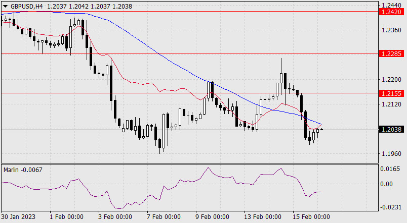 Прогноз по GBP/USD на 16 февраля 2023 годаИнстаФорекс - Instaforex, 2 года назад Игроки на понижение по британскому фунту пошли в решительное наступление – вчерашнее падение фунта составило 140 пунктов. Опубликованные вчера данные по инфляции оказались слабее прогнозов, так базовый ИПЦ в январе снизился с 12,9% г/г до 12,6% г/г против ожидания роста до 13,1% г/г. На дневном масштабе произошёл синхронный разворот цены от линии Крузенштерна и осциллятора Марлин от нулевой линии. Теперь задача фунта взять цель 1.1900. Успешное выполнение данной задачи откроет дорогу к отработке 1.1737.