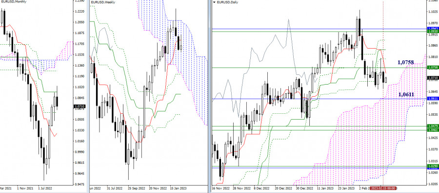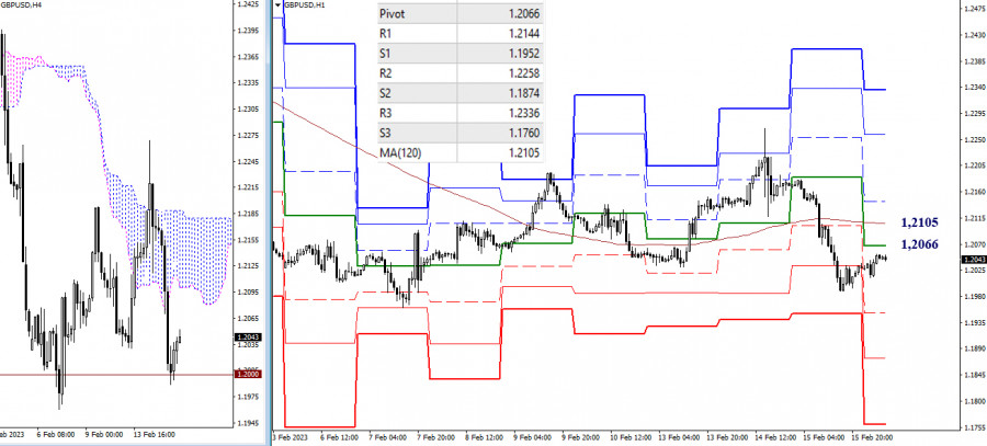EUR/USD и GBP/USD 16 февраля – технический анализ ситуацииИнстаФорекс - Instaforex, 2 года назад EUR/USD Старшие таймфреймы В прошлые сутки преобладали медвежьи настроения, но обновить ближайший минимальный экстремум не получилось. Пара продолжает работать в зоне консолидации. Для игроков на повышение по-прежнему важно преодолеть район 1,0758 (недельный краткосрочный тренд), в то время как для соперника основной задачей сейчас является преодоление месячной поддержки (1,0611) и закрепление в дневном облаке. Н4 – Н1 Поддержка цели Н4 (1,0662) вновь сдержала ситуацию и вынудила игроков на понижение отступить. В настоящий момент тестируются ключевые уровни младших таймфреймов 1,0698 – 1,0716 (центральный Пивот уровень + недельная долгосрочная тенденция). Обладание ключевыми уровнями обеспечивает основное преимущество. Среди других дополнительных ориентиров сегодня внутри дня можно отметить классические Пивот уровни сопротивления (1,0735 – 1,0781 – 1,0818) и поддержки (1,0652 – 1,0615 – 1,0569). *** GBP/USD Старшие таймфреймы Игроки на понижение вчера подтвердили устремления и значение предыдущей длинной верхней тени на дневном таймфрейме, но уйти за пределы дневной коррекции (1,1960) у них не получилось. Закрепление ниже минимума (1,1960) позволит рассматривать следующие понижательные ориентиры – зону поддержек 1,1842 – 1,1795 (месячный уровень + нижняя граница дневного облака). Неудача в данном направлении вернёт пару в широкую зону сопротивлений (1,2083 – 1,2115 – 1,2144 – 1,2203 – 1,2261), образованную уровнями дневного креста и облака, с усилением от недельного краткосрочного тренда. Н4 – Н1 Вчера после очередного тестирования важного психологического уровня 1,2000 игроки на понижение вынуждены были взять паузу. Пробой уровня вернёт актуальность другим ориентирам младших временных интервалов, например, поддержкам классических Пивот уровней (1,1952 – 1,1874 – 1,1760). Закрепление выше ключевых уровней 1,2066 – 1,2105 (центральный Пивот уровень + недельная долгосрочная тенденция) повлияет на баланс сил в пользу игроков на повышение. Повышательные ориентиры в этом случае можно отметить на 1,2144 – 1,2258 – 1,2336 (классические Пивот уровни). *** При техническом анализе ситуации использованы: старшие таймфреймы – Ichimoku Kinko Hyo (9.26.52) + уровни Фибо Киджун; младшие таймфреймы – Н1 – Pivot Points (классические) + Moving Avarage 120 (недельная долгосрочная тенденция). Материал предоставлен компанией InstaForex - www.instaforex.com |