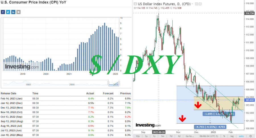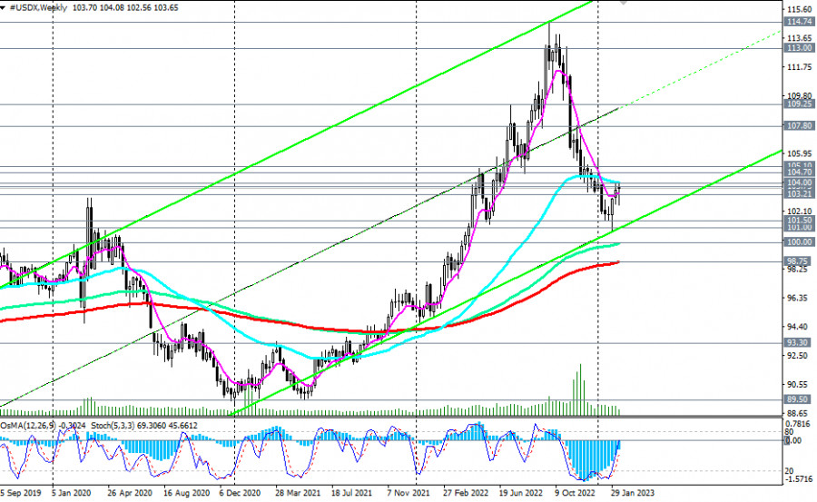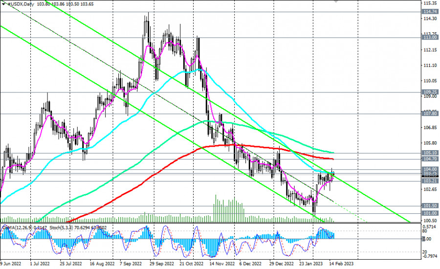 Доллар: краткие итоги и ближайшие перспективыИнстаФорекс - Instaforex, 2 года назад Несмотря на значительное укрепление индекса доллара DXY в начале месяца после публикации сильного отчета по рынку труда США, он все же с октября пока что сохраняет негативную динамику, после достижения в конце сентября локального 20-летнего максимума 114.74. На момент же публикации данной статьи фьючерсы DXY (CFD #USDX в торговом терминале МТ4) торговались вблизи отметки 103.63, оставаясь на протяжении нескольких дней в диапазоне между отметками 104.03 и 102.39. Очевидно, что доллару нужны новые драйверы, чтобы прорвать этот диапазон в ту или другую сторону. Накануне доллар получил поддержку со стороны макроэкономических данных из США: объёмы розничных продаж выросли в январе на +3,0% (против снижения на -1,1% в предыдущем месяце и прогноза о росте на +1,8%). Но большинство экономистов считает, что доллар и его индекс DXY продолжат снижаться в сторону ключевой и психологически сильной отметки 100.00 (см. также наши предыдущие обзоры Доллар: краткие итоги и ближайшие перспективы и Индекс доллара #USDX: сценарии динамики на 14.02.2023). Экономисты оценивают перспективы дальнейшего повышения процентной ставки ФРС накануне заседания ЦБ 21 и 22 марта после публикации во вторник данных по потребительской инфляции. Согласно этим данным, в январе годовой CPI замедлился с +6,5% до +6,4%. Хотя инфляция в США остается все еще неприемлемо высокой для ФРС, но она продолжает снижаться с 40-летнего пика, достигнутого в июне на уровне 9,1%. Это значит, что ФРС может продолжить ослабление темпов роста процентной ставки. Вполне возможно, что на мартовском заседании процентная ставка будет повышена в последний раз в этом году. Если же ситуация на рынке труда начнет также ухудшаться, как и ситуация в экономике из-за проведения жесткой монетарной политики американского ЦБ, то вероятность ее разворота в другую сторону еще более вырастет, отметили м ы в нашем вчерашнем обзоре Доллар: в ожидании новых драйверов). Сегодня участники рынка, прежде всего те, кто следит за котировками доллара, обратят внимание на публикацию (в 13:30 GMT) еженедельной статистики по динамике заявок на получение пособия по безработице, а также по индексу цен производителей PPI за январь. Прогнозы предполагают рост числа заявок по безработице и замедление PPI в январе до 5,4%, с 6,2% в декабре. Это негативные для доллара значения. Данные PPI, в частности, также свидетельствуют о некотором ослаблении инфляционного давления, в том числе на ФРС при принятии ею очередного решения по ужесточению монетарной политики. Если данные по ценам производителей и числу заявок по безработице окажутся лучше прогноза (выше прогнозных значений), доллар, вероятно, укрепится. В течение американской торговой сессии также ожидаются выступления ряда представителей руководства ФРС. *) о важных событиях недели см. в Важнейшие экономические события недели 13.02.2023 – 19.02.2023 Уровни поддержки: 103.21, 103.00, 102.00, 101.50, 101.00, 100.00, 98.75 Уровни сопротивления: 103.75, 104.00, 104.70, 105.10, 107.80, 109.25