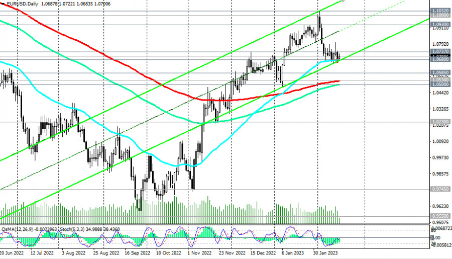 EUR/USD: сценарии динамики на 16.02.2023ИнстаФорекс - Instaforex, 2 года назад Как мы отметили в нашем сегодняшнем Фундаментальном анализе, в начале месяца локального 10-месячного максимума 1.1032, в дальнейшем пара EUR/USD резко снизилась, прежде всего на фоне укрепления доллара, потеряв к настоящему моменту примерно 1,5% в стоимости. Давление на позиции евро оказывает не очень убедительная макро статистика из еврозоны. И все же инвесторы сохраняют оптимизм в отношении пары EUR/USD, в том числе на ожиданиях ослабления доллара. Пробой важного краткосрочного уровня сопротивления 1.0737 (ЕМА200 на 1-часовом графике и ЕМА200 на 4-часовом графике) станет первым сигналом для возобновления длинных позиций, а пара EUR/USD направится в сторону недавнего максимума и верхней границы восходящего канала на дневном графике 1.1032 с промежуточными целями на уровнях сопротивления 1.0930, 1.1000. В альтернативном сценарии EUR/USD повторит попытку пробоя важного уровня поддержки 0.0680 (ЕМА50 и нижняя линия восходящего канала на дневном графике). Удачная попытка придаст паре новый медвежий импульс в ее движении к ключевым уровням поддержки 1.0530 (ЕМА200 на дневном графике), 1.0500 (ЕМА144 на дневном графике). Их пробой окончательно вернет EUR/USD в зону долгосрочного медвежьего рынка. *) о важных событиях недели см. в Важнейшие экономические события недели 13.02.2023 – 19.02.2023 **) об особенностях торговли парой см. в EUR/USD: валютная пара (характеристики, рекомендации) ***) о динамике USD см. в сегодняшнем обзоре Доллар: краткие итоги и ближайшие перспективы Уровни поддержки: 1.0680, 1.0585, 1.0530, 1.0500, 1.0230 Уровни сопротивления: 1.0737, 1.0800, 1.0930, 1.1000, 1.1032, 1.1120, 1.1610