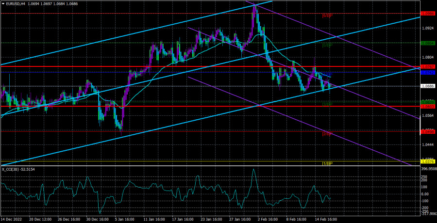 Обзор пары EUR/USD. 17 февраля. Очередное «пустое» выступление Кристин Лагард.ИнстаФорекс - Instaforex, 2 года назад Валютная пара EUR/USD в четверг вновь попыталась продолжить движение вниз, но волатильность была очень слабой. Несмотря на то, что в течение дня было опубликовано несколько отчетов в США, все они оказались второстепенными, о чем мы предупреждали трейдеров вчера. Может быть реакция на отдельно взятый отчет в 20-30 пунктов и имела место быть, но разве мы ждем такой реакции? Таким образом, мы даже не будем заострять внимание на макроэкономической статистике из-за океана. Куда более интересна сейчас техническая картина. Мы бы сказали, что пара сейчас находится между двух огней. Если на 4-часовом ТФ уже давно сформировалась нисходящая тенденция, которая не отменяется, то на 24-часовом ТФ пока что мы видим не самый убедительный откат. Формально линия Киджун-сен преодолена, но пара остается в непосредственной близости от нее, поэтому все может поменяться очень быстро. На этой неделе все наиболее важные события уже прошли, поэтому в оставшуюся ее часть мы не можем ожидать сильной волатильности и уверенного трендового движения. Тем не менее, мы все еще ждем от пары дальнейшего снижения, потому что на дневном ТФ отлично видно, насколько слаба текущая коррекция вниз в сравнении с предшествующим ей движением вверх. Мы считаем, что евровалюта все еще сильно перекуплена, а доллар упал настолько сильно за последние месяцы не совсем заслуженно. Риторика представителей ЕЦБ и ФРС остается «ястребиной» и с каждой стороны поступают намеки и заявления о возможном более сильном ужесточении монетарной политики, чем прогнозировалось ранее. Таким образом, евро и доллар находятся сейчас приблизительно в равных условиях в отношении ставок. Кристин Лагард была жестока, но банальна.На этой неделе состоялось очередное выступление Кристин Лагард. Глава ЕЦБ в последнее время выступает достаточно часто, но что она может нового сообщить рынку, если уже давно всем известны планы регулятора? Еще до повышения ставки в феврале рынок был уверен в двух подряд повышениях на 0,5% и последующем на 0,25%. Таким образом, слова госпожи Лагард о практически гарантированном ужесточении монетарной политики в марте на полпроцента не вызвали никакой реакции рынка. Мы уже говорили ранее, что подобные решения уже давно отработаны рынком, так как о них известно тоже давно. Госпожа Лагард также отметила, что инфляция все еще остается на высоком уровне, поэтому центральному банку нужно продолжать действовать агрессивно. Ничего нового. В то же время глава ЦБ Ирландии Габриэль Маклуф заявил, что ставка по депозитам вырастет выше 3,5% и будет оставаться на этом значении довольно долгий срок. В данное время ключевая ставка равняется 2,5%, а депозитная – еще меньше. Мы считаем, что даже 3,25% ставки не хватит, чтобы инфляция вернулась к 2% в обозримом будущем. Поэтому мы являемся приверженцами того мнения, что ставка ЕЦБ будет расти дольше, чем 2 заседания. Конечно, многое будет зависеть от состояния европейской экономики, которая вот-вот скатится в рецессию, но, если пренебречь этим фактором, то ЕЦБ имеет гораздо больший потенциал для ужесточения, чем ФРС. Следовательно, в течение 2023 года европейская валюта вполне может возобновить движение на Север. Мы не против такого варианта развития событи
