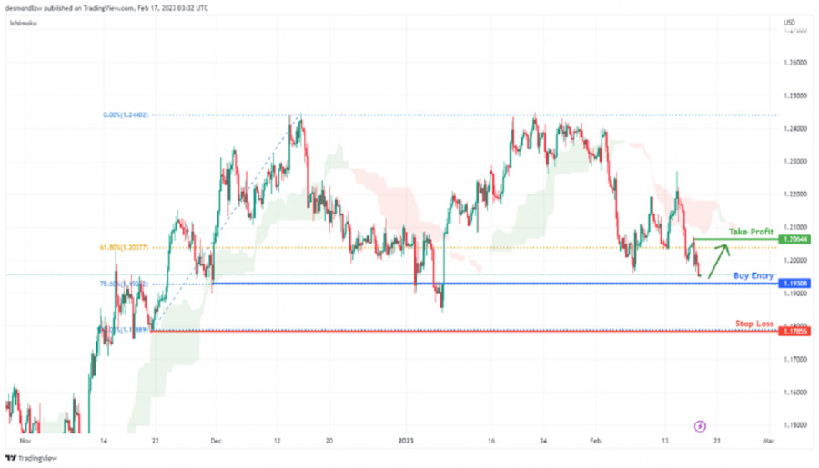 GBP/USD: ожидается повторное тестирование уровня поддержки. Прогноз на 17 февраля 2023ИнстаФорекс - Instaforex, 2 года назад На 4-часовом графике пара GBP/USD торгуется с бычьим уклоном, несмотря на то, что в настоящее время цена находится ниже облака Ишимоку. Ожидается, что цена пойдет вниз, чтобы повторно протестировать уровень поддержки. Рекомендуется покупать на уровне 1.19308, соответствующем уровню поддержки и уровню коррекции Фибоначчи 78.6%. Прибыль может быть зафиксирована на уровне 1.20644, где расположен недавний уровень свинг-хай. Стоп-лосс ордер может быть установлен на уровне 1.17855, соответствующем недавнему уровню свинг-лоу. Рекомендации по торговле Вход: 1.19308 Условия для входа: уровень поддержки и уровень поддержки Фибоначчи 78.6% Тейк-профит: 1.20644 Условия для фиксации прибыли: недавний уровень свинг-хай + уровень коррекции Фибоначчи 61.8% Стоп-лосс: 1.17855 Условия для активации ордера стоп-лосс: недавний уровень свинг-хай Материал предоставлен компанией InstaForex - www.instaforex.com |