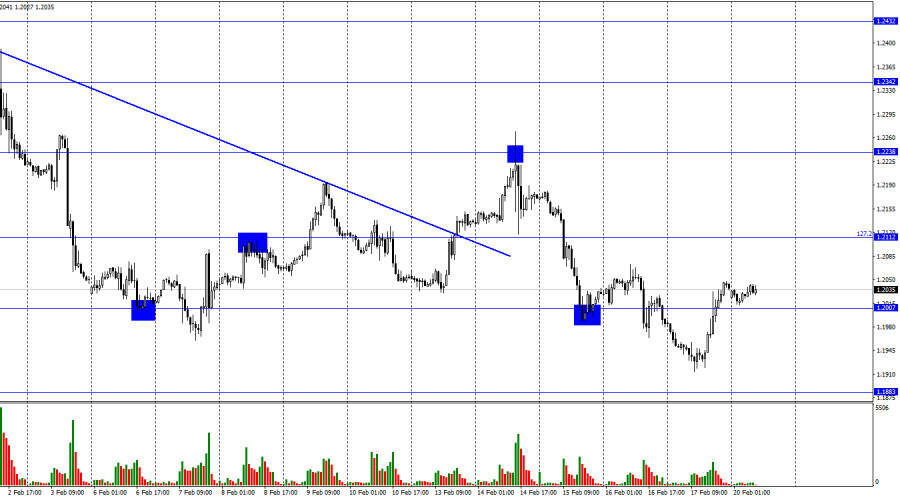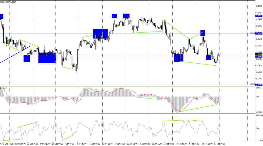 GBP/USD. 20 февраля. Британец не видит под собой днаИнстаФорекс - Instaforex, 2 года назад Добрый день, уважаемые трейдеры! На часовом графике пара GBP/USD в пятницу выполнила падение в направлении уровня 1,1883, разворот в пользу британца и рост выше уровня 1,2007. Уровень 1,2007 в данное время не является сильным, поэтому я бы не рассчитывал на сильный рост. Уже сегодня или завтра пара может выполнить закрепление под уровнем 1,2007, что позволит трейдерам ожидать продолжение падения в направлении уровня 1,1883. В пятницу в Великобритании вышел только отчет по объемам розничной торговли, который объективно был лучше ожиданий трейдеров. Однако сами трейдеры не посчитали необходимым покупать фунт. Его рост начался только во второй половине дня, когда на рынок вышли американцы. Я считаю, что рост пары был связан с фиксацией коротких позиций, но общее настроение рынка не изменилось. Ситуация с информационным фоном сейчас не совсем однозначная. Все наиболее важные данные и события этого месяца уже состоялись. Я имею в виду заседания Банка Англии и ФРС, отчеты по инфляции. Остаются лишь не самые важные публикации, а надеяться можно только на выступления членов FOMC и Банка Англии, потому что вопросов по ставкам у рынка остается очень много. Иными словами, трейдеры совершенно не понимают, до какого значения может теперь вырасти ставка ФРС и британского регулятора. Джером Пауэлл и некоторые другие директора дали понять на прошлой неделе, что ставка может расти дольше(особенно на фоне замедления падения инфляции), а от Банка Англии сейчас вообще сложно ожидать чего-то иного, кроме повышения по 0,50% до тех пор, пока инфляция не начнет показывать существенные темпы замедления. В текущих условиях я бы большее внимание уделял графической картине, но и она не совсем однозначная. На 4-часовом графике это хорошо видно. Поэтому на этой неделе я советую трейдерам не ожидать тренда и быть готовыми к частым сменам направления. На 4-часовом графике пара выполнила разворот в пользу британца после образования «бычье» дивергенции у индикатора MACD. Пара также выполнила закрепление над уровнем 1,2008, что позволяет рассчитывать на некоторый рост. Но, как я уже говорил, падение может возобновиться в любой момент. И это может быть не обвальное падение(для него нужен сильный информационный фон), а достаточно слабое падение. Новых назревающих дивергенций не наблюдается ни у одного индикатора. Отчет Commitments of Traders (COT):