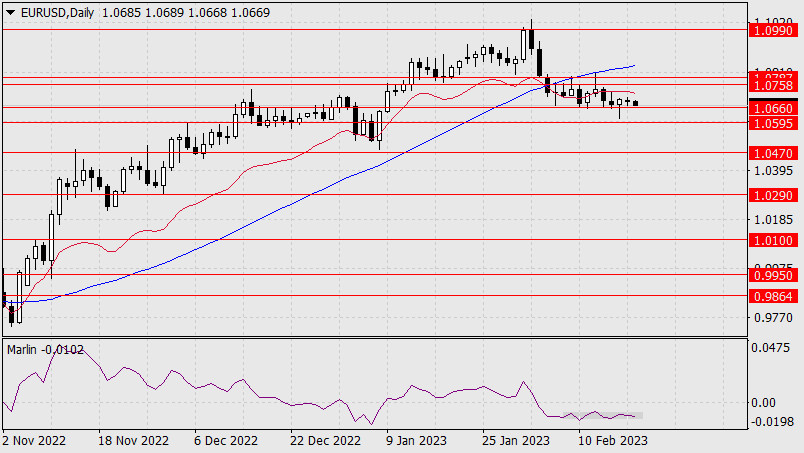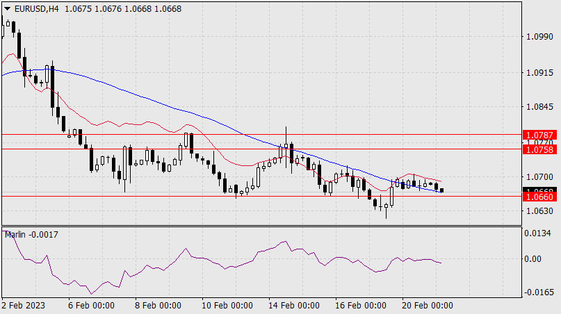 Прогноз по EUR/USD на 21 февраля 2023 годаИнстаФорекс - Instaforex, 2 года назад Во вчерашний тихий понедельник евро не стал нарушать поддержку важного технического уровня 1.0660, продолжив консолидацию под индикаторными линиями. Сигнальная линия осциллятора Марлин также в боковике, но на территории понижающейся тенденции, что в совокупности держит понижающийся потенциал в силе. Преодоление уровня 1.0660 откроет ближайшую цель 1.0595. Далее возможен поход к 1.0470. Для включения линии Крузенштерна в подмогу цене, ей нужно подняться достаточно высоко (1.0710), желательно закрепиться над линией баланса (индикаторная красная). А пока цена по-прежнему испытывает давление основных технических факторов. Ждём цену на уровне 1.0595. |