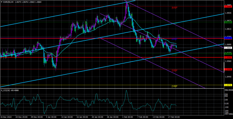Обзор пары EUR/USD. 21 февраля. ЕЦБ сохраняет «ястребиный» монетарный настройИнстаФорекс - Instaforex, 2 года назад Валютная пара EUR/USD в понедельник не показала абсолютно никакого движения. Волатильность была мизерной, что отчасти объясняется полным отсутствием важных фундаментальных и макроэкономических событий. Плюс по понедельникам мы часто становимся свидетелями слабых движений. Рынку нужно «раскачаться» после выходных, на это требуется некоторое время. Тем не менее, пара осталась ниже скользящей средней линии, то есть хотя бы флэта в данное время нет. На прошлой неделе была предпринята попытка закрепиться выше скользящей средней линии, но она оказалась неудачной и спровоцированной отчетом по американской инфляции. Так как инфляция замедлилась в январе очень слабо, то дорожать должен был доллар США. Рынок же поначалу начал продавать его, потом же осознал свою ошибку и вернулся к покупкам. Именно в это время мы и увидели ложное преодоление мувинга, которое очень быстро было нивелировано. В итоге в данное время индикатор Хайкен Аши уже развернулся вниз, поэтому уже сегодня пары может опуститься к уровням 1,0620 и 1,0590. Мы считаем, что падение европейской валюты должно продолжаться в перспективе как минимум 2-3 недель. В течение этого времени пара может достаточно скорректироваться вниз. Достаточно для того, чтобы потом начать формирование нового восходящего тренда, если в 2023 году рынок настроен на такой тренд. Как мы уже говорили, один из ключевых факторов поддержки евровалюты, который помогал ей в течение последних месяцев, отработан рынком был несколько раз. ЕЦБ провозгласил о своих планах на ближайшие несколько месяцев, поэтому рынок мог заранее отработать повышение ставки на 1,25%. Европейский центробанк, вероятно, не ограничиться таким ужесточением монетарной политики, так как инфляция все еще чрезмерно высока, но в то же время пока что рынку ничего неизвестно о будущих шагах регулятора. И в любом случае, даже если «ястребиный» настрой сохраниться и в мае, и в июне, евровалюта не может постоянно дорожать. Коррекции нужны в любом случае. Олли Рен: ставки будут расти до лета.В понедельник, пожалуй, единственным событием стало выступление одного из членов монетарного комитета ЕЦБ Олли Рена. В принципе, он озвучил ту риторику, которую от него и ждали. В частности, он заявил, что повышение ставок должно продолжаться, так как базовая инфляция остается на слишком высоком уровне и не показывает замедления. В марте ставка должна вырасти опять на 0,5%. Целесообразно продолжать повышать ставку до лета и в это время достичь ее пикового значения. Затем ставки придется держать достаточно долгое время на высоком уровне, чтобы инфляция вернулась к 2%. В принципе, за исключением слов о возможном сохранении ужесточения до самого лета, все эти тезисы были давно известны рынку. Как мы и говорили, ЕЦБ, вероятно, сохранит «ястребиный» настрой, что может в среднесрочной перспективе поддержать евро, но следует помнить, что ФРС тоже может продолжать повышать ставку до лета. И в этом случае ставка ФРС практически гарантированно будет выше ставки ЕЦБ к тому времени. Поэтому, на наш взгляд, сильной поддержки евровалюта уже не получит. Но и оснований для сильного падения в область ценового паритета у нее уже быть не должно. Минимальной целью для текущего движени
