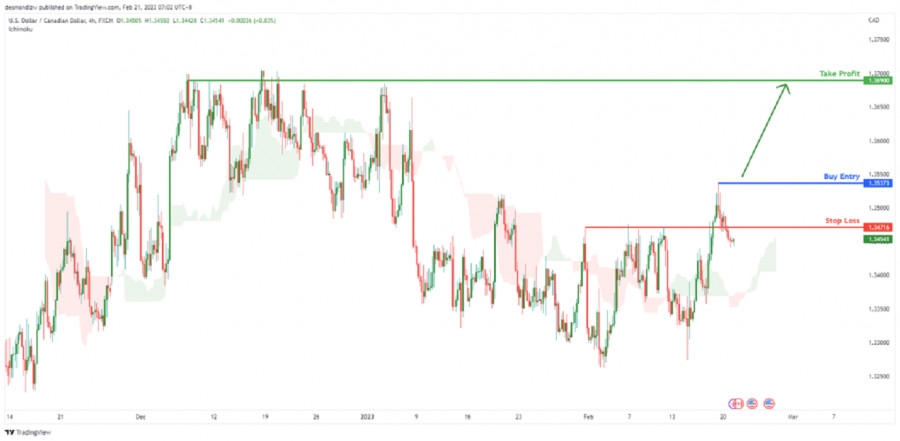 USD/CAD: возможен рост до ключевого уровня сопротивления. Прогноз на 21 февраля 2023ИнстаФорекс - Instaforex, 2 года назад На 4-часовом графике пара USD/CAD движется в восходящем направлении. В настоящее время цена находится выше облака Ишимоку, что указывает на бычий импульс. Рекомендуется покупать на уровне 1.35373. Стоп-лосс ордер может быть установлен на уровне поддержки 1.34570. Прибыль может быть зафиксирована на уровне 1.36900, где расположен ключевой уровень сопротивления. Торговая рекомендация Вход: 1.35373 Условия для входа: стоп-приказ на покупку с целью поймать бычий импульс Тейк-профит: 1.36900 Условия для фиксации прибыли: ключевой уровень сопротивления Стоп-лосс: 1.34570 Условия для активации ордера стоп-лосс: уровень поддержки Материал предоставлен компанией InstaForex - www.instaforex.com |