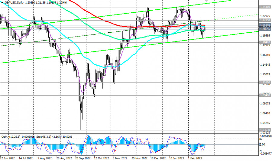 GBP/USD: сценарии динамики на 21.02.2023ИнстаФорекс - Instaforex, 2 года назад В прошлом месяце на фоне слабости американского доллара пара GBP/USD смогла скорректироваться с локального минимума 1.1842 и достичь отметки 1.2440. С началом же этого месяца снижение GBP/USD возобновилось. Цена пробила важные среднесрочные уровни поддержки 1.2135 (ЕМА200 на дневном графике), 1.2055 (ЕМА144 на дневном графике) и достигла в минувшую пятницу локального внутри месячного минимума 1.1915. В то же время, как мы отметили в нашем сегодняшнем «Фундаментальном анализе», сегодня фунт резко укрепился после публикации отчета S&P Global, в том числе и в паре GBP/USD, которая подскочила в моменте на 115 пунктов. Цена пробила важный краткосрочный уровень сопротивления 1.2065 (ЕМА200 на 1-часовом графике), а полученный бычий импульс может протолкнуть пару к уровню сопротивления 1.2135. Выше – вряд ли, по крайней мере пока. Для этого фунту нужны новые сильные позитивные драйверы, а их пока что не предвидится, в то время как экономисты предрекают Великобритании неизбежный экономический спад и рецессию. Наиболее вероятен отскок о текущих отметок и вблизи уровня сопротивления 1.2135 и возобновление снижения. Пробой уровней поддержки 1.2065, 1.2055 подтвердит сценарий на снижение и возобновление глобального нисходящего тренда GBP/USD. В альтернативном сценарии в случае дальнейшего роста и после пробоя важного уровня сопротивления 1.2135 GBP/USD направится в сторону уровня сопротивления 1.2215 (ЕМА50 на недельном графике), а затем – в сторону ключевых уровней сопротивления 1.2710 (ЕМА144 на недельном графике), 1.2860 (ЕМА200 на недельном графике). *) об особенностях торговли GBP/USD см. в статье GBP/USD: валютная пара (характеристики, рекомендации) **) о важных событиях недели см. в Важнейшие экономические события недели 20.02.2023 – 26.02.2023 Уровни поддержки: 1.2065, 1.2055, 1.2000, 1.1842, 1.1160, 1.0940 Уровни сопротивления: 1.2135, 1.2200, 1.2215, 1.2300, 1.2400, 1.2440, 1.2500, 1.2600, 1.2710, 1.2800, 1.2860