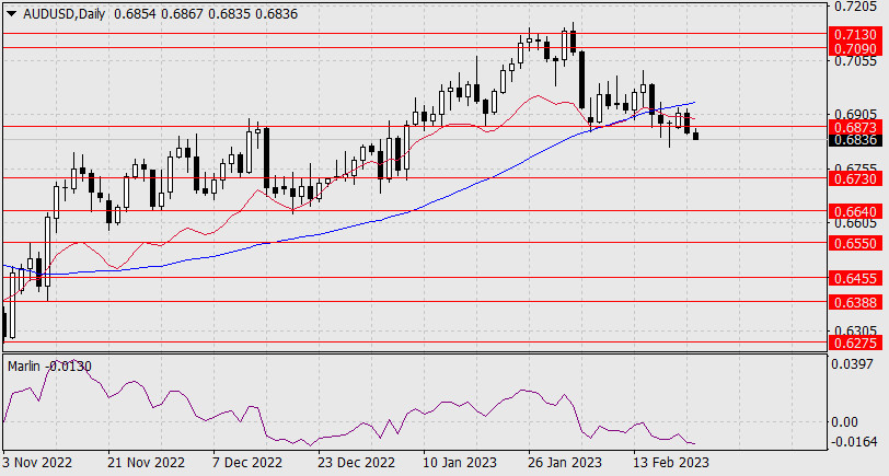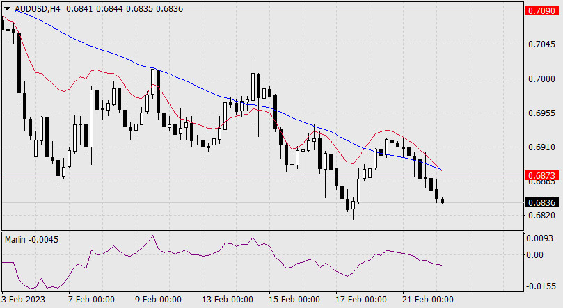Прогноз по AUD/USD на 22 февраля 2023 годаИнстаФорекс - Instaforex, 2 года назад Во вторник чёрная дневная свеча австралийского доллара закрылась под уровнем поддержки 0.6873 – цена сделала то, что не могла сделать с 10-го января. Сегодня утром продолжается движение вниз.