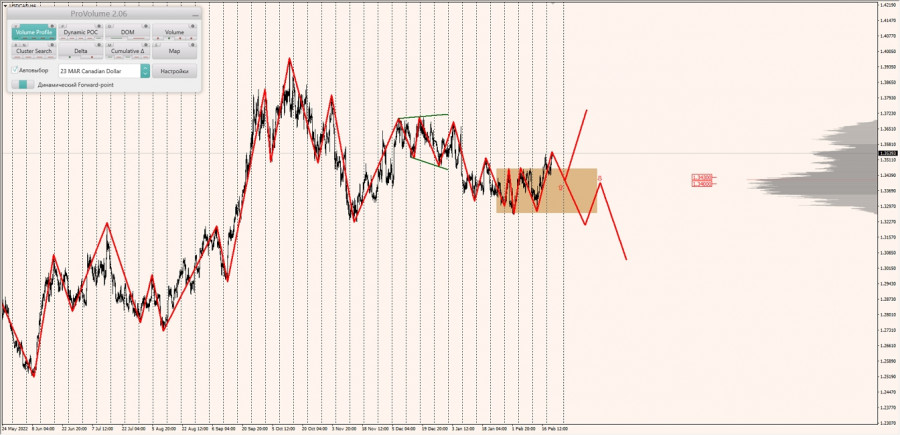 Долгосрочная тенденция: в лонг. Максимальное скопление объемов текущего контракта расположено в диапазоне, по котировкам 1.34000-1.34300. В настоящий момент по паре совершаются инвестиционные операции выше, указывая на силу покупателей.