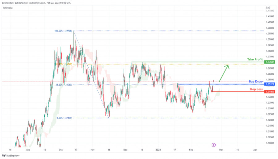 USD/CAD: возможен бычий отскок до уровня свинг-хай. Прогноз на 22 февраля 2023 г.ИнстаФорекс - Instaforex, 2 года назад На 4-часовом графике пара USD/CAD торгуется с бычьим уклоном. В настоящее время цена находится выше Облака Ишимоку. Рекомендуется покупать на откате на уровне 1.35129, где находится уровень сопротивления. Прибыль может быть зафиксирована на уровне 1.37042, где расположен уровень коррекции Фибоначчи 61.8%. Стоп-лосс ордер может быть установлен на уровне 1.34466, соответствующем недавнему уровню свинг-лоу. Торговая рекомендация Вход: 1.35129 Условия для входа: уровень сопротивления Тейк-профит: 1.37042 Условия для фиксации прибыли: 61.8% уровень коррекции Фибоначчи Стоп-лосс: 1.34466 Условия для активации ордера стоп-лосс: недавний уровень свинг-лоу Материал предоставлен компанией InstaForex - www.instaforex.com |