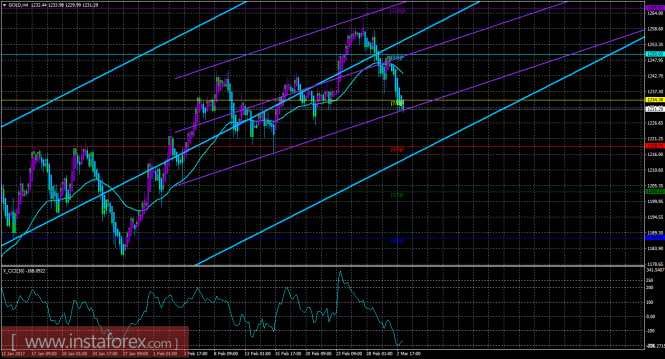 Техническая картина инструмента GOLD по системе «Каналы регрессии» за 3 марта 2017 годаИнстаФорекс - Instaforex, 8 лет назад 4-часовой таймфрейм Технические данные: Старший канал линейной регрессии: направление – вверх Младший канал линейной регрессии: направление – вверх Скользящая средняя (20; сглаженная) – вниз CCI: -168.0922 Пояснения: Техническая картина золота 3 марта показывает, что цена преодолела уровень Мюррея «77/8» и продолжает двигаться вниз. Старший канал направлен вверх, что свидетельствует о восходящем направлении движения глобального тренда. Младший канал также направлен вверх, что означает восходящее направление движения и в среднесрочном плане. Сейчас цена находится ниже мувинга и ниже уровня Мюррея «7/8», что указывает на восходящее направление движения в ближайшие дни. Первой целью для движения вниз, таким образом, является уровень Мюррея «6/8» - 1218,75, но открывать шорты сейчас по-прежнему не рекомендуется. Если первый таргет будет преодолен, то новой целью будет выступать уровень Мюррея «5/8» - 1203,13. Мувинг направлен вбок, а цена располагается ниже него, поэтому сейчас более вероятно нисходящее движение. Хайкен Аши окрасил последние бары в голубой цвет, что сигнализирует о локальном нисходящем движении. Разворот индикатора вверх просигнализирует о начале коррекционного движения, но ордера на продажу сейчас не актуальны при любой направленности индикатора. Лонги можно будет рассматривать только выше скользящей средней линии. Индикатор CCI находится около уровня -200, что сигнализирует о наличии сильной перепроданности инструмента, ожидается восходящий откат. Ближайшие уровни поддержки: S1 – 1218,75 S2 – 1203,13 S3 – 1187,50 Ближайшие уровни сопротивления: R1 – 1234,38 R2 – 1250,00 R3 – 1265,63 Торговые рекомендации: Исходя из анализа движения курса золота, можно сделать вывод, что сейчас не рекомендуется рассматривать любые позиции на рынке. Для актуальности шортов требуется дождаться разворота вниз любого канала. Для возможности рассмотрения длинных позиций следует дождаться закрепления цены выше мувинга. Помимо технической картины следует также учитывать фундаментальные данные и время их выхода. Пояснения к иллюстрации: Старший канал линейной регрессии – голубые линии однонаправленного движения. Младший канал линейной регрессии – фиолетовые линии однонаправленного движения. CCI – голубая линия в окне индикатора. Скользящая средняя (20;сглаженная) – голубая линия на графике цены. Уровни Мюррея – разноцветные горизонтальные полосы. Хайкен Аши – индикатор, окрашивающий бары в голубой или фиолетовый цвета.Материал предоставлен компанией InstaForex - www.instaforex.com |