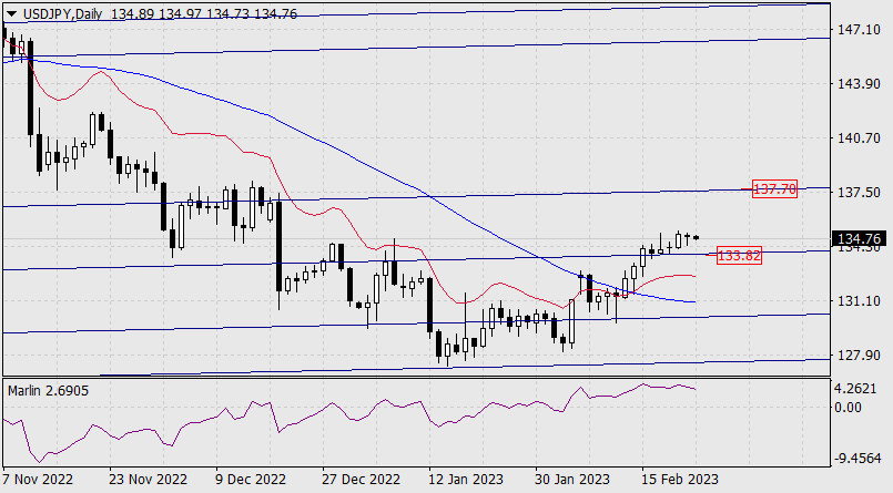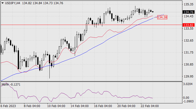 Прогноз по USD/JPY на 23 февраля 2023 годаИнстаФорекс - Instaforex, 2 года назад Вчера йена не сильно отреагировала на общий тренд укрепления американского доллара – пара USD/JPY даже снизилась на 10 пунктов. Сегодня в Японии национальный праздник, и общая тенденция роста, которая получила подтверждение во вторник, также может быть не поддержана.