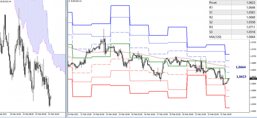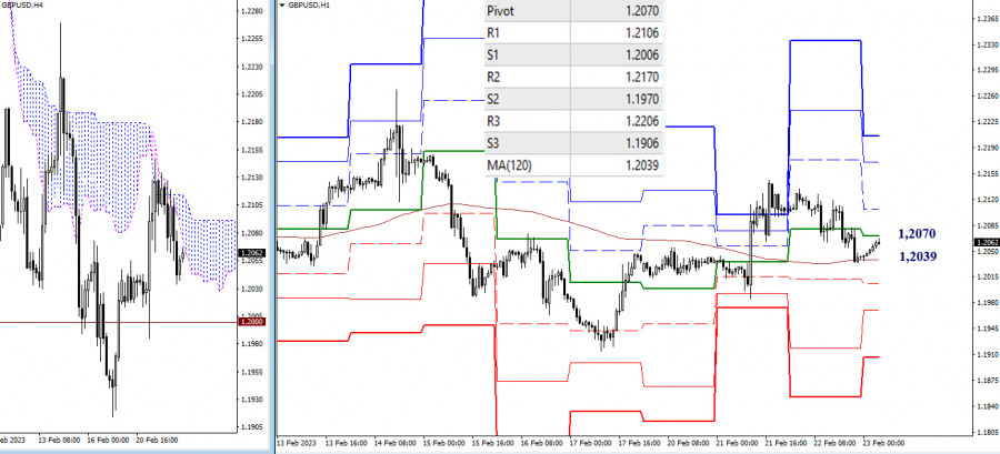 EUR/USD и GBP/USD 23 февраля – технический анализ ситуацииИнстаФорекс - Instaforex, 2 года назад EUR/USD Старшие таймфреймы Игроки на понижение вчера обновили минимум прошлой недели (1,0613) и закрыли сутки ниже месячной поддержки (1,0611). Удержание достигнутых позиций откроет перед игроками на понижение новые ориентиры – недельные поддержки (1,0461 – 1,0416) и нижнюю границу дневного облака. Отбой от уровня 1,0611 вернёт пару к тестированию сопротивлений краткосрочных трендов дневного (1,0702) и недельного (1,0758) таймфреймов. Н4 – Н1 На младших таймах игроки на понижение сегодня сохраняют основное преимущество и развивают нисходящий тренд. Ориентирами для продолжения снижения внутри дня сейчас служат 1,0581 – 1,0558 – 1,0516 (классические Пивот уровни). В настоящий момент наблюдается небольшой коррекционный подъём, тестируется центральный Пивот уровень (1,0623). Далее ориентирами для продолжения коррекции являются 1,0646 (R1) и 1,0664 (недельная долгосрочная тенденция). Закрепление выше 1,0664 и разворот мувинга изменят действующий баланс сил. Следующие ориентиры внутри дня сегодня расположены на 1,0688 (R2) и 1,0711 (R3). *** GBP/USD Старшие таймфреймы Настроения вновь изменились. От сопротивления 1,2144 (недельный краткосрочный тренд) вчера последовал отбой. Неопределённость ситуации сохраняется, кроме этого по-прежнему сохраняется расположение ориентиров. Для игроков на повышение можно отметить сопротивления 1,2092 – 1,2118 – 1,2144 – 1,2180 (дневные и недельные уровни). Для игроков на понижение значение могут иметь поддержки 1,1889 (нижняя граница дневного облака) и 1,1842 (месячный Фибо Киджун). Н4 – Н1 На младших таймах пара не так давно тестировала ключевую поддержку – недельную долгосрочную тенденцию (1,2039). Работа выше уровня сохраняет шансы игроков на повышение в плане сохранения и усиления преимущества. Восстановление позиций сегодня внутри дня может пролегать через 1,2070 – 1,2106 – 1,2170 – 1,2206 (классические Пивот уровни). Пробой 1,2039 и надёжное закрепление ниже отдаст пальму первенства игрокам на понижение. Медвежьи ориентиры сегодня можно отметить на 1,2006 – 1,1970 – 1,1906 (классические Пивот уровни). *** При техническом анализе ситуации использованы: старшие таймфреймы – Ichimoku Kinko Hyo (9.26.52) + уровни Фибо Киджун; младшие таймфреймы – Н1 – Pivot Points (классические) + Moving Avarage 120 (недельная долгосрочная тенденция). Материал предоставлен компанией InstaForex - www.instaforex.com |
