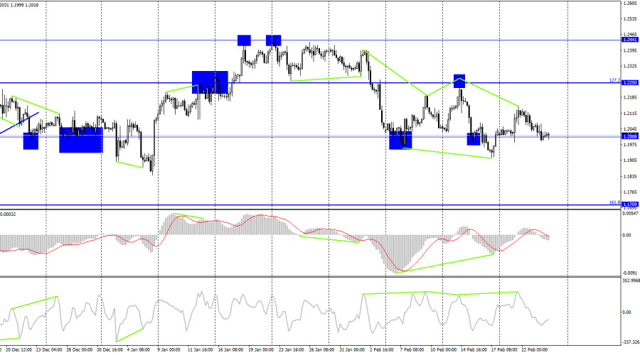 GBP/USD. 24 февраля. Британец не спешит продолжать падениеИнстаФорекс - Instaforex, 2 года назад Добрый день, уважаемые трейдеры! На часовом графике пара GBP/USD выполнила падение к уровню 1,2007. Отбой котировок от этого уровня сработает в пользу европейской валюты и некоторого роста в направлении нисходящей трендовой линии, которая характеризует настроение трейдеров как «медвежье». Закрепление курса пары под уровнем 1,2007 повысит вероятность дальнейшего падения в направлении следующего уровня 1,1883. Вчерашний день для британского фунта был совершенно пустым, а для американца – ограниченно-важным. В США вышел второй отчет по ВВП за четвертый квартал, и надо сказать, что его значение не совпало ни с ожиданиями трейдеров, ни с прошлым значением. Если месяцем ранее он показал рост на 2,9%, то есть значение снизилось до 2,7% кв/кв. Американская валюта в течение вчерашнего дня все равно выполнила рост, но он мог бы быть более сильным, если бы не этот отчет. Впрочем, это еще не финальное значение за четвертый квартал. В третьей оценке показатель может вновь быть оценен выше. Помимо этого, сам по себе рост на 2,7% в условиях, когда еще несколько месяцев назад все предрекали американской экономике рецессию, это очень хорошо. И 0,1–0,2% в любую сторону – не слишком принципиально. Тем не менее, должен отметить, что британец не спешит падать по примеру евровалюты, значит что-то сдерживает трейдеров-медведей. При чем что-то, связанное с Великобританией. Индексы деловой активности на этой неделе, безусловно, порадовали быков, но сегодня уже пятница, пора бы забыть эти данные. Внимательно советую следить за трендовой линией, так как возможно закрытие над ней, которое покажет, что быки вновь переходят в наступление. Сегодня информационный фон выражен лишь не самыми важными отчетами в США. В Британии состоятся выступления Канлиффа и Тенрейро(представители Банка Англии). Их речи могут помочь определить британцу с направлением движения. На 4-часовом графике пара выполнила разворот в пользу американского доллара после образования «медвежьей» дивергенции у индикатора CCI. Теперь пара движется в направлении уровня 1,2008, с преодолением которого проблем не должно возникнуть. Это преодоление позволит ожидать дальнейшее падение в направлении следующего уровня коррекции 161,8% – 1,1709. Новых назревающих дивергенций не наблюдается ни у одного индикатора. Отчет Commitments of Traders (COT):